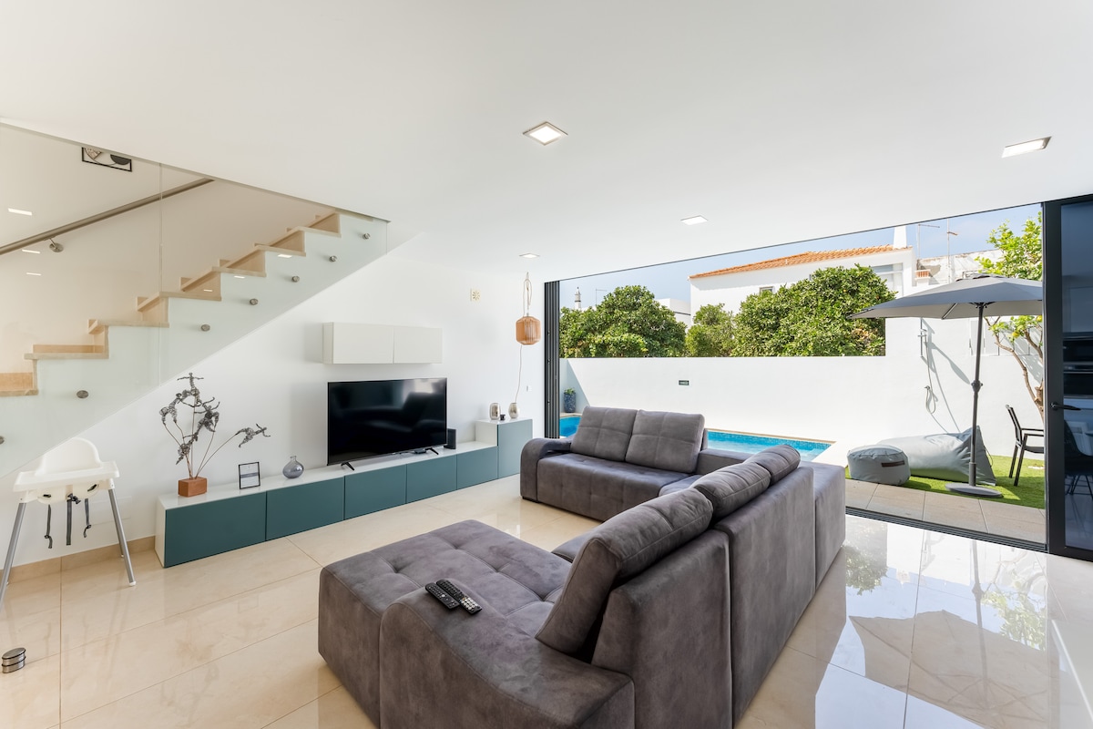 Discover modern Mediterranean-inspired living at this exquisite villa in Santa Bárbara de Nexe. Minutes from Faro Airport and Almancil, this serene retreat offers a heated pool, rooftop jacuzzi, seamless indoor-outdoor living, an outdoor kitchen, and elegant Mediterranean-style interiors. Perfect for families, couples, or groups seeking a memorable getaway with hiking trails, countryside views, and access to beaches, golf courses, shopping, and dining. Send us a message!