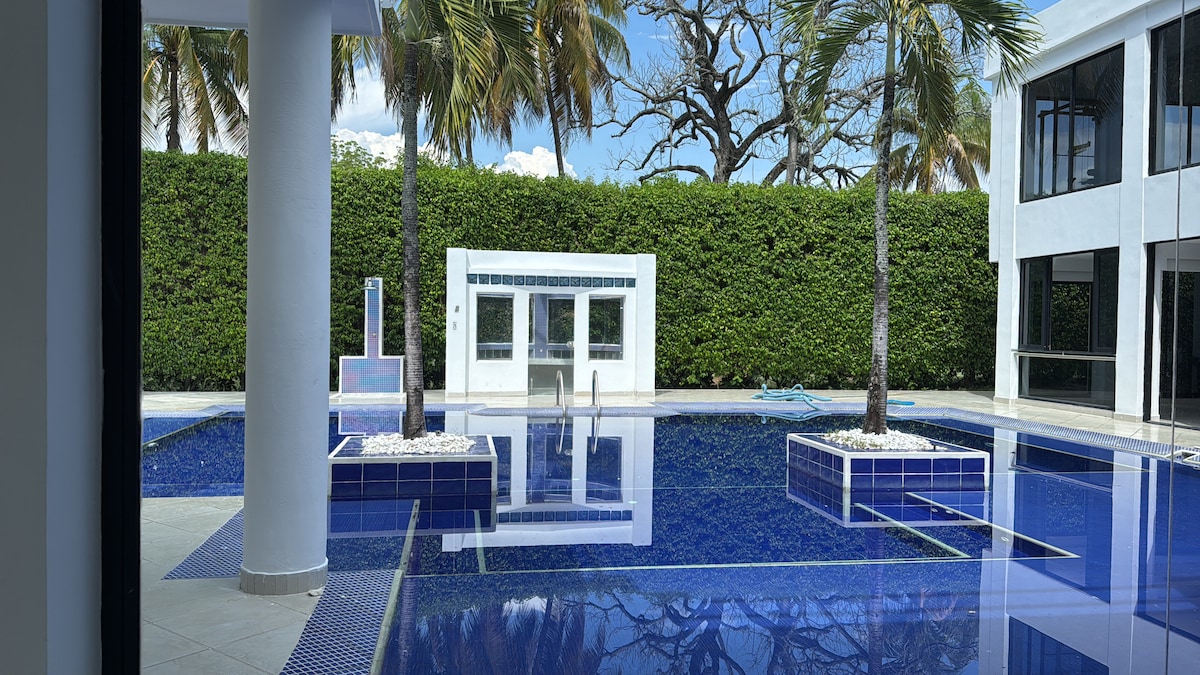 Tu escape perfecto en Lagos del Peñón! Casa de lujo en conjunto cerrado: 4 habitaciones con baño privado, A/C y abanicos. Sábanas y toallas incluidas. Una habitación con TV satelital. Zona social soñada: piscina, jacuzzi y BBQ para asados. Sala principal y sala de estar con TV satelital. Amplia cocina con dotación completa y un amplio comedor. Baño social. Ultra Wi-Fi 150 MB. El conjunto ofrece canchas de tenis, excelentes senderos para caminar y un entorno ideal para compartir en familia.
