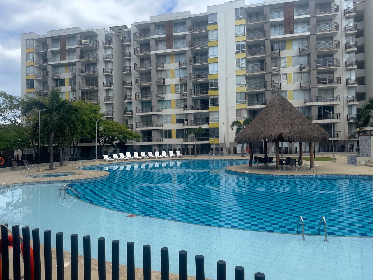 Apto para descanso con piscina y clima perfecto.