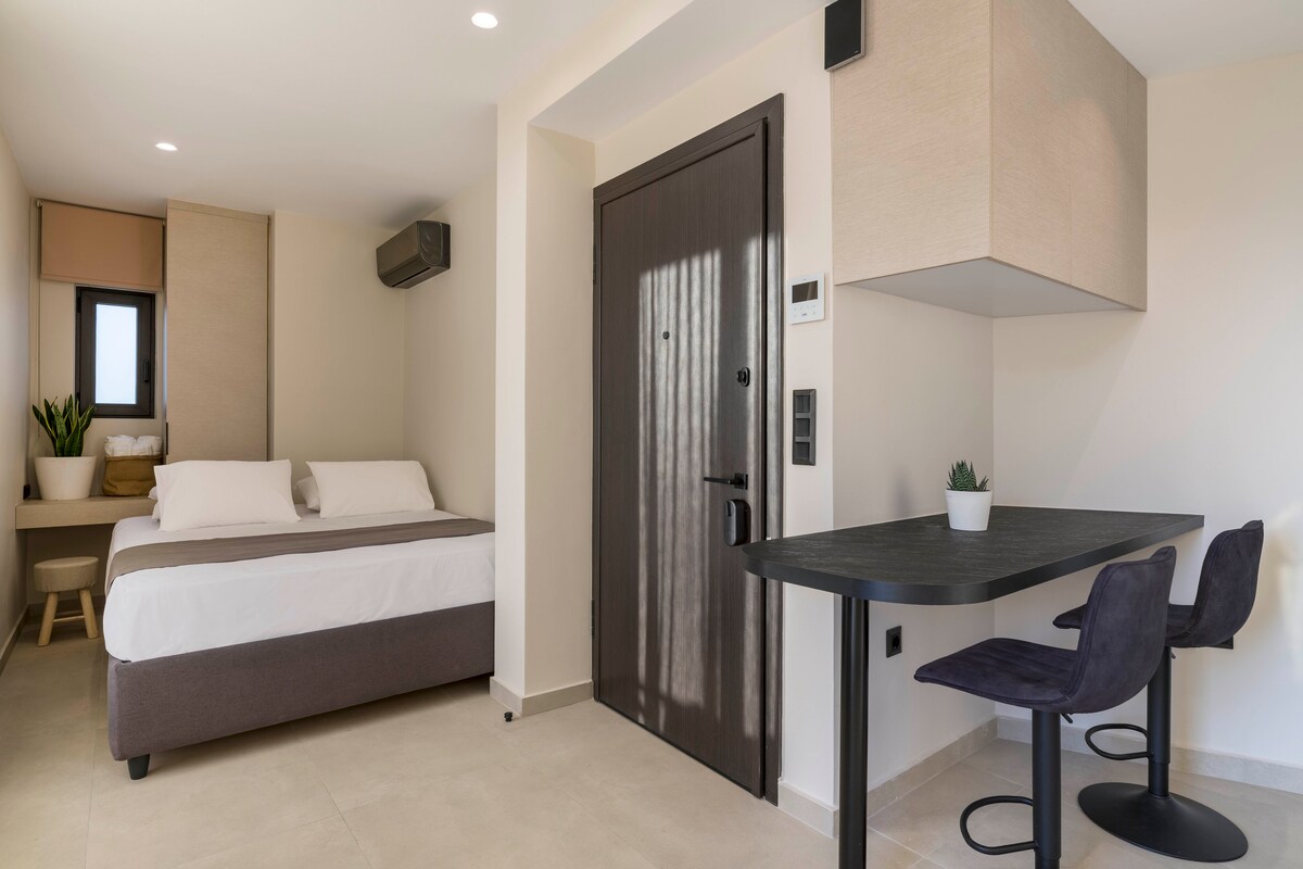 ¡Bienvenido a un estudio de lujo asequible a pocos pasos del metro Ambelokipi! Este alquiler limpio y moderno fue cuidadosamente diseñado para maximizar tu comodidad en 30 metros cuadrados de espacio con aire acondicionado y calefacción de gas natural. A los huéspedes les encantará el cómodo colchón, las diversas opciones de iluminación dentro del apartamento, una puerta segura y varios elementos incorporados, como el armario, el refrigerador y la lavadora. La cocina está totalmente equipada y funcional.