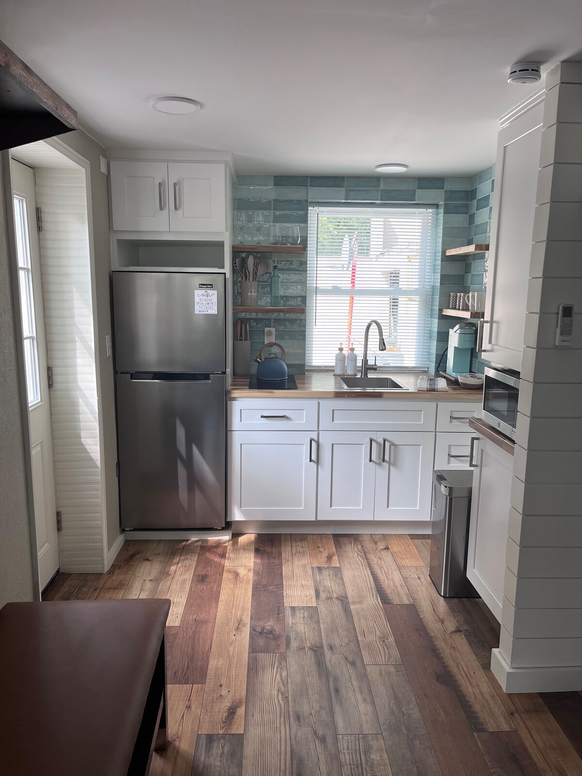 Good things definitely come in pet friendly, environmentally conscious, small packages. Solar upgrade makes this lake front cottage 100% energy efficient. Built with an open, thoughtful design offering private bath, washer/dryer, full kitchen, Hotel Suite Luxury bedding and Tempur-Pedic mattress, blazing fast wifi, 46"HDTV (w/ Netflix, Sling, Prime and Plex), private deck with nice lake view. Cozy, charming and stocked with everything you could want for a perfect vacation or staycation.