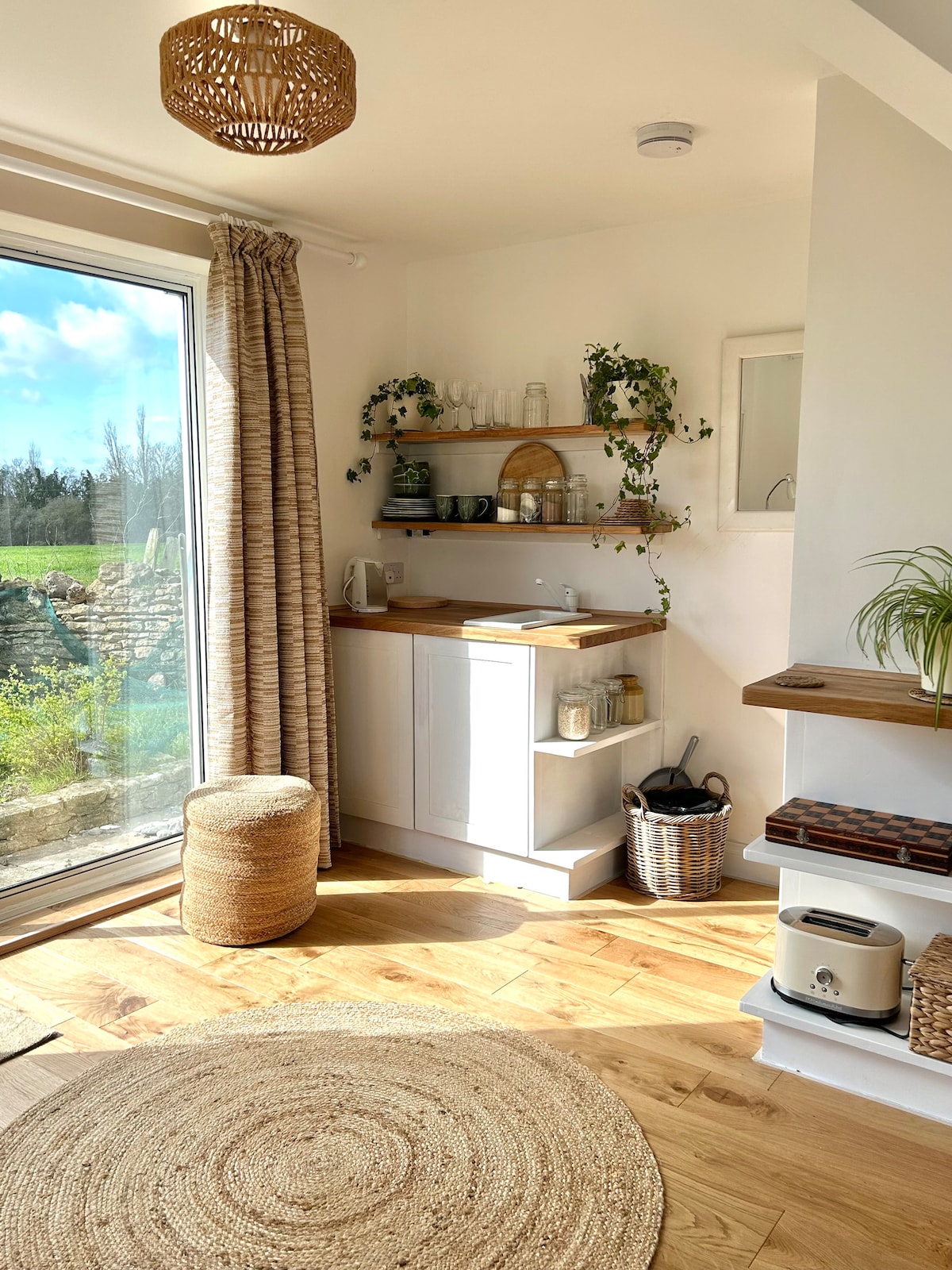 Aislado y lujoso anexo en el bosque de Cotswold, rodeado de bosques antiguos y tierras de cultivo orgánico, situado a las afueras de Cirencester. Ofrecemos ropa de cama y toallas de calidad hotelera, TV inteligente, una selección de cereales, con una variedad de tés Clipper y Pukka, y café recién hecho con cafetera. También nos esforzamos por ofrecer extras, como refrigerios ligeros en la nevera, etc. En las inmediaciones: paseos por el bosque, acogedores pubs, tienda de productos orgánicos y cafetería, actividades familiares, historia romana. Consulta la información sobre el sofá cama.