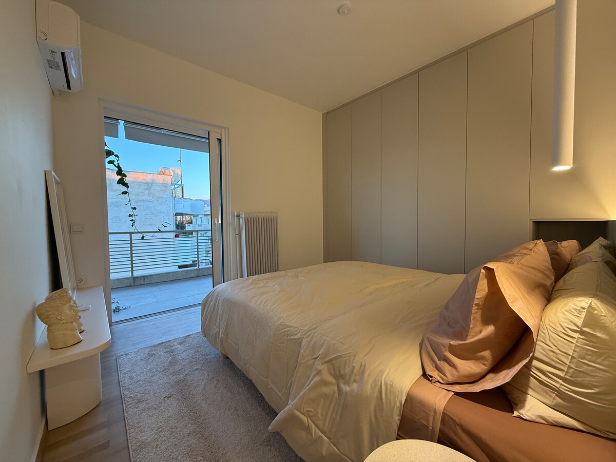 Welcome to a stylish penthouse situated on the 5th floor in the heart of Glyfada, offering privacy and a unique urban-luxury experience. The property features a large private balcony with a high-end outdoor jacuzzi, ideal for year-round relaxation. A standout feature of the apartment is its retractable roof, available in both the living room and bedroom, providing natural light and offering stargazing opportunities. Cafés, shops, nightlife, and the beach are all within walking distance.