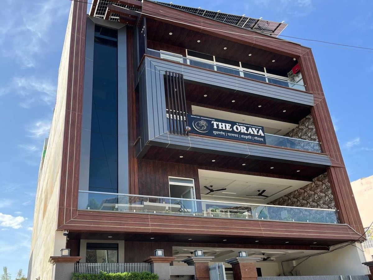 Bienvenido a una estancia cómoda en nuestra espaciosa y luminosa villa en el corazón de Lucknow. Nuestra villa de 5 dormitorios en la lujosa zona de Kapoorthala-Aliganj ofrece: Villa/entrada independiente Cocina privada Servicios modernos Aires acondicionados nuevos (Hitachi, Voltas), nevera, lavadora RO (Havells) 5 baños modernos (todos con accesorios Jaguar) Perfecto para familias, trabajadores remotos, invitados a bodas y estudiantes de exámenes UPPSC. Disfruta de Lucknow con comodidad en esta tranquila y acogedora villa independiente iluminada por lámparas de pozo