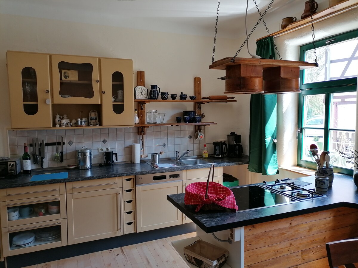 Nuestra casa se encuentra en el centro histórico del pueblo de Bischleben, un distrito de la capital del estado, Erfurt. La tranquila ubicación a orillas del río Gera, en el límite del bosque Steigerwald, junto con la proximidad a la ciudad y las buenas conexiones de transporte, ofrece un punto de partida ideal para visitar Erfurt y sus alrededores, así como para hacer senderismo y ciclismo. El carril bici de Gera pasa justo por delante de la casa. Los viajeros de negocios encontrarán noches tranquilas y relajantes, así como aparcamiento gratuito.