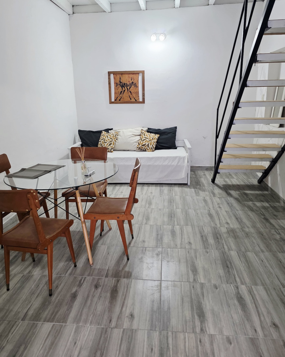 Este loft único tiene su propio estilo industrial Ubicado en el centro de la ciudad de Goya, zona costanera a 2 cuadras del Club Náutico, el Bar Sativa y el Paseo de los Poetas y a 3 cuadras de la Iglesia Catedral y la Plaza Mitre que es la principal de Goya Cuenta con una amplia cocina comedor, frigobar, kitchenette, pava eléctrica , utensilios de cocina. Televisor, habitación con dos camas individuales, aire acondicionado y WIFI