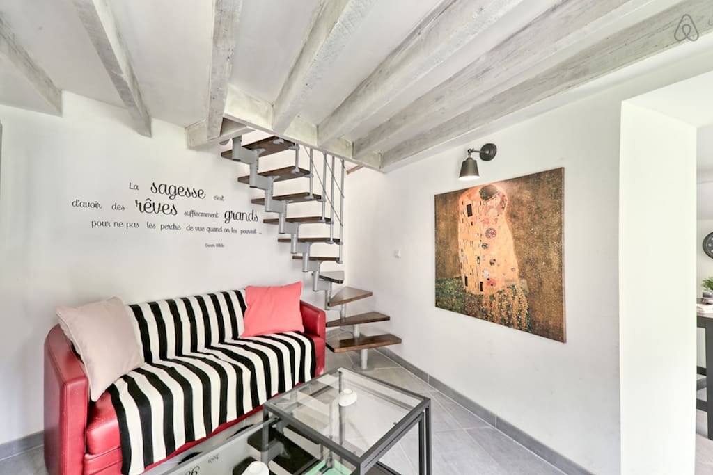 A cinco minutos del Museo del Louvre y Beaubourg, este barrio de Montorgueil es uno de los más bellos de París. Con sus numerosas calles peatonales, tiene, en las inmediaciones, varios cafés y restaurantes de moda, así como tiendas. Este alojamiento está muy bien comunicado (5 estaciones de metro) y se encuentra en un patio de un edificio tranquilo. Ofrece una habitación independiente, una pequeña sala de estar con sofá cama, así como una zona de cocina equipada. También encontrarás sábanas y toallas.