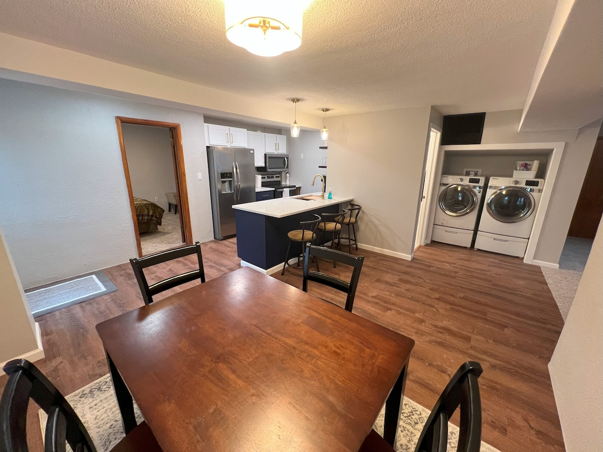 ¡Te damos la bienvenida a The Traveler Suite! Convenientemente ubicado justo al lado de la I-70 en Grandview Plaza. Este hermoso apartamento ofrece un ambiente tranquilo a la vez que está a solo unos minutos de los servicios locales. Si bien ambos dormitorios cuentan con camas tamaño king, el principal incluye un baño privado y el dormitorio de invitados cuenta con literas individuales incorporadas, ¡ideal para niños o huéspedes adicionales! El apartamento tiene capacidad para seis personas cómodamente, por lo que es perfecto para personal militar en transición, trabajadores contratados o cualquier persona que simplemente pase.
