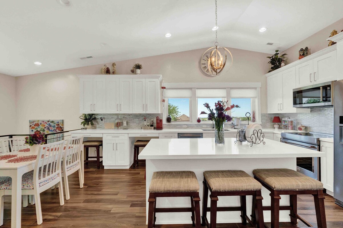 A Private entrance will invite you into your own two-bedroom basement suite. NO CLEANING FEES ***You must agree to our ALLERGY NOTICE to book*** Fall into a deep sleep with queen-size beds and newer furnishings throughout. The cozy living room is great to spread out and relax. Full kitchen and dining area. Enjoy Unlimited Hot water. Endless movies and shows are at your fingertips along with Super High-Speed Wifi. There is plenty of room to relax after a long day of traveling and playing.