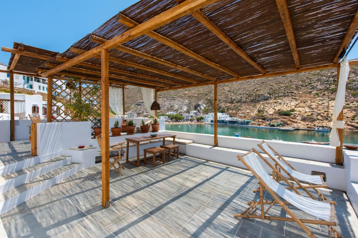 Construido alrededor de los arcos cicládicos llamados Camares, casi en la entrada del castillo, el estudio se encuentra en un barrio muy conocido que combina tanto la privacidad como la vibrante vida de restaurantes, bares de vinos y todo tipo de tiendas. El estudio cuenta con una cama tamaño king, un sofá cama para 2 personas, una pequeña cocina y un baño privado, así como una terraza privada con vistas al mar y a las bulliciosas calles. El puerto, la playa y dos aparcamientos públicos también están muy cerca del apartamento.