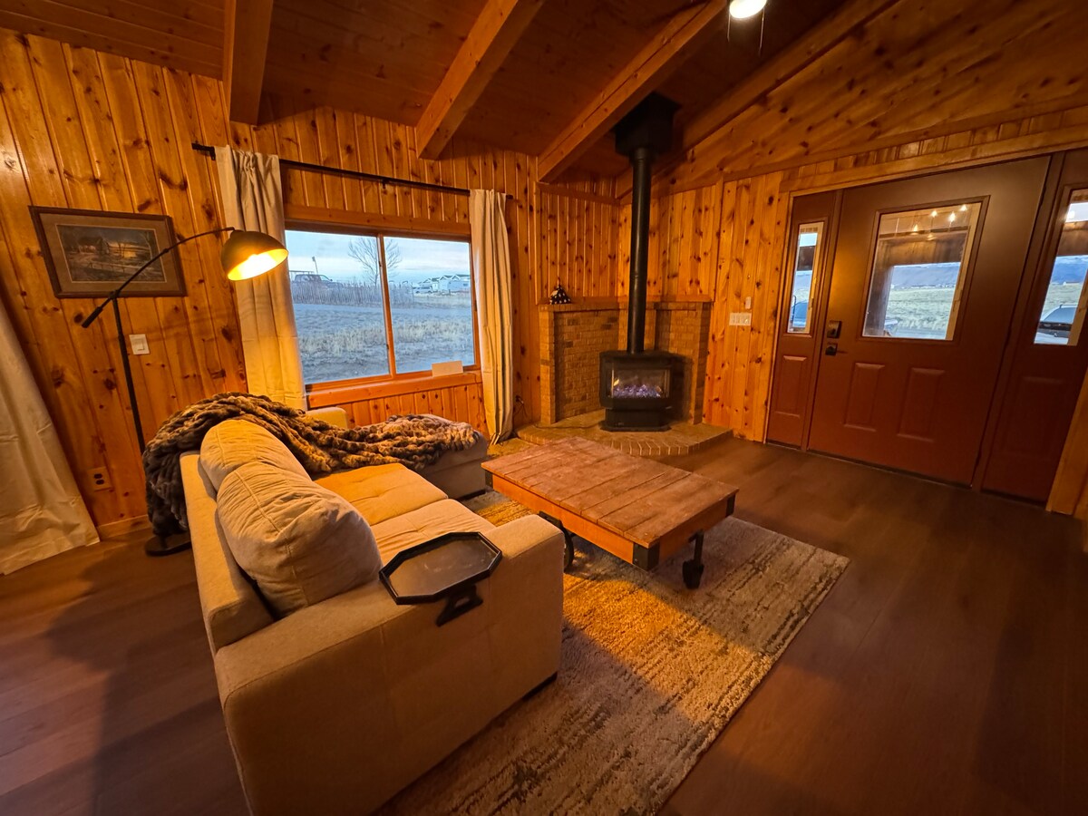 Hermoso salón occidental ubicado en una propiedad de 10 acres en Teton Valley. Los huéspedes pueden disfrutar de impresionantes atardeceres y amaneceres en este alojamiento divertido y único. Este espacioso salón de un dormitorio tiene una lujosa cama tamaño queen, sofá cama extraíble, chimenea acogedora y mesa de billar. Disfruta de un descanso en el jacuzzi de agua salada o de una fogata bajo las estrellas en este refugio de montaña. Un arroyo atraviesa la propiedad, y hay múltiples áreas de estar al aire libre donde puedes relajarte y disfrutar de estar en la naturaleza.
