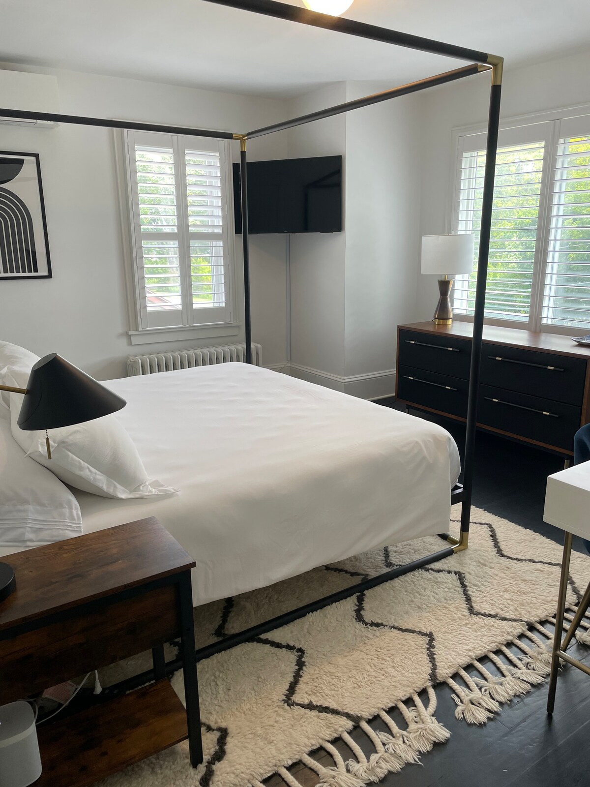 Oasis en medio del centro de Hudson, a 2 manzanas de Warren St, a pocos pasos de Amtrak, a media manzana del sendero Empire State. Amplio y soleado apartamento tipo estudio con vallado en el patio, entorno tipo parque y porche privado para relajarse, comer o ver el mundo pasar. Dentro de esta elegante casa de 1850, encontrarás dormitorio, sala de estar y áreas de trabajo, cocina completa con mesa de comedor y un gran baño con bañera con patas y una ducha a ras de suelo. También se han conservado con cuidado los detalles arquitectónicos originales. ¡Ven y disfruta!