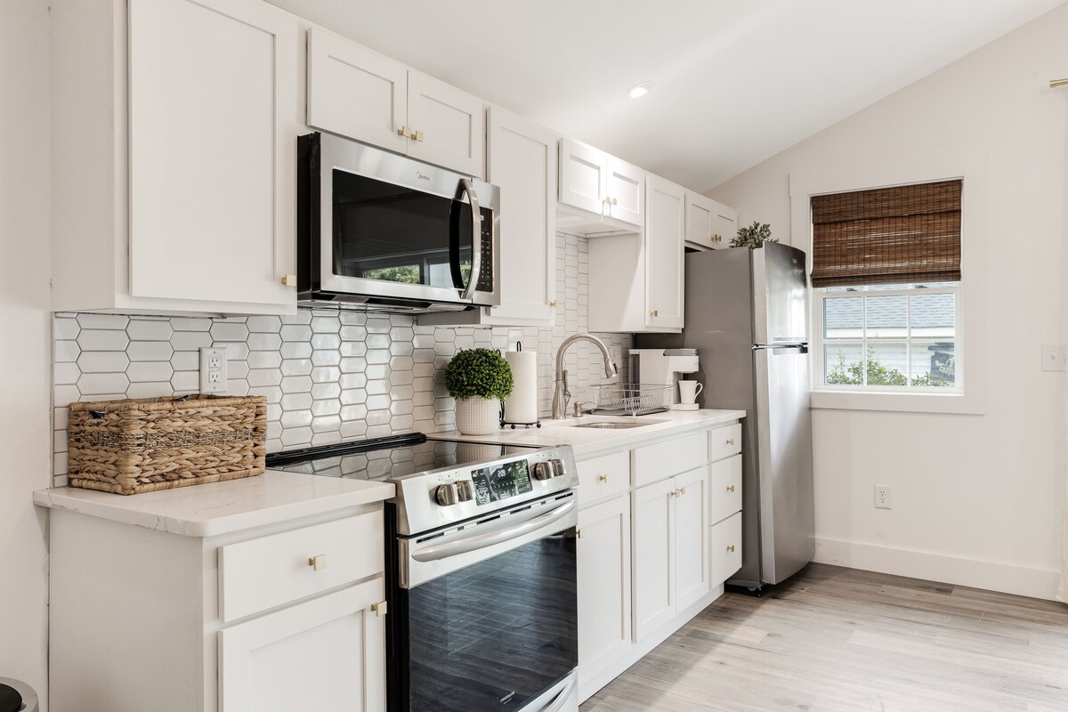 ¡Bienvenido a tu acogedor refugio en el West End del centro de Greenville! Este estudio con garaje independiente de nueva construcción cerca del prometedor West End Village, Unity Park y el centro de la ciudad ofrece fácil acceso al mejor entretenimiento de la ciudad, tiendas boutique y una vibrante escena gastronómica. Disfruta de una cama tamaño queen de espuma viscoelástica, una cocina totalmente equipada y un comedor dedicado. Wifi de alta velocidad y TV inteligente incluidos. Perfecto para una escapada tranquila con todas las comodidades que necesitas para una estancia inolvidable.