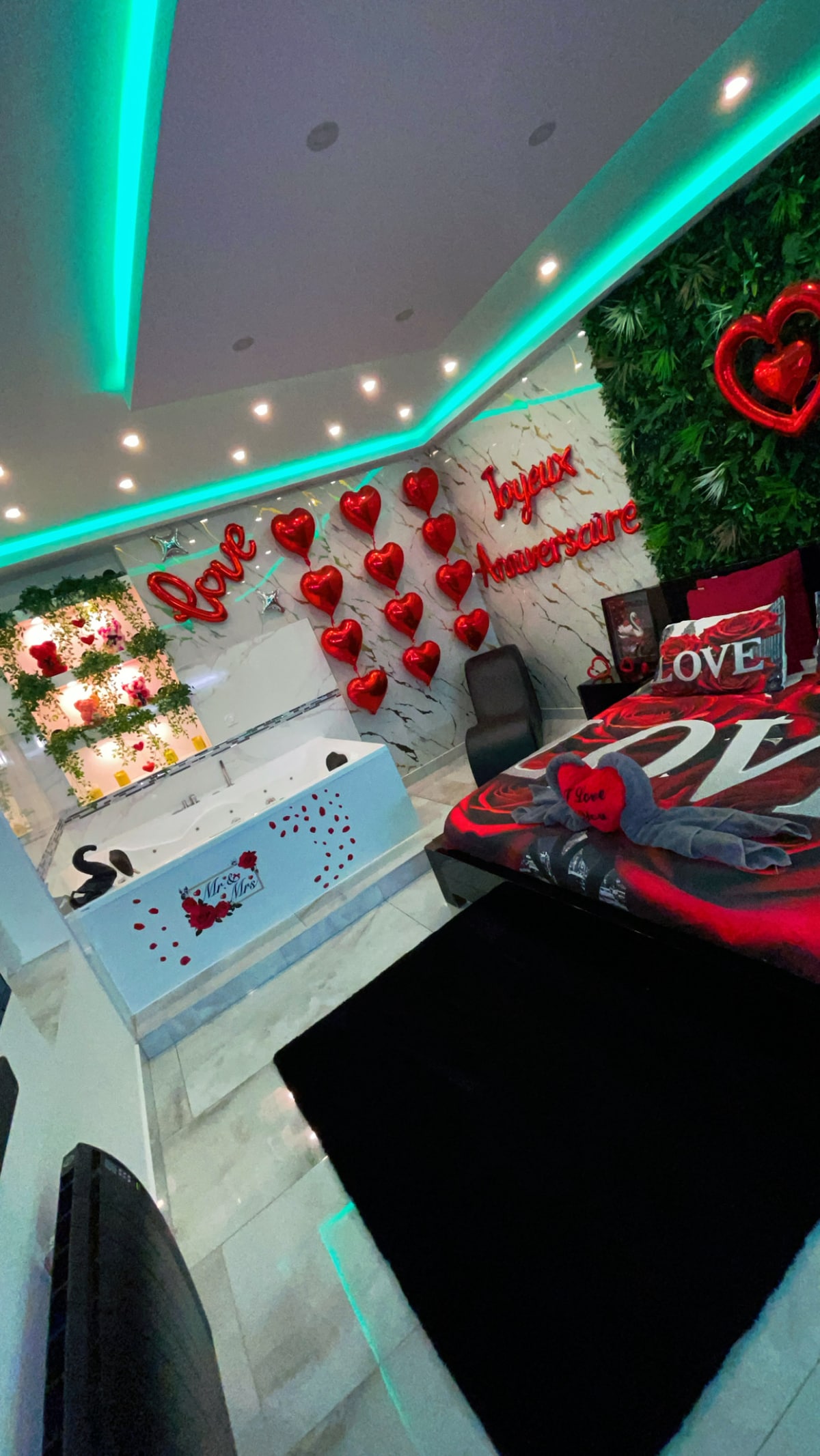 Vous êtes à la recherche d’un cocon sensuel et haut de gamme? Venez profiter d’une nuit magique dans notre Love Room et créer des souvenirs inoubliables. Quoi de mieux qu’une balneo avec fonction jacuzzi et chromothérapie pour développer tous vos sens? Les accessoires tels que la Croix de Saint André, la balançoire, ou le Sofa Tantra vous permettront de découvrir ou redécouvrir votre partenaire… car tout est conçu pour que vous passiez un excellent séjour sous le signe des plaisirs charnels…