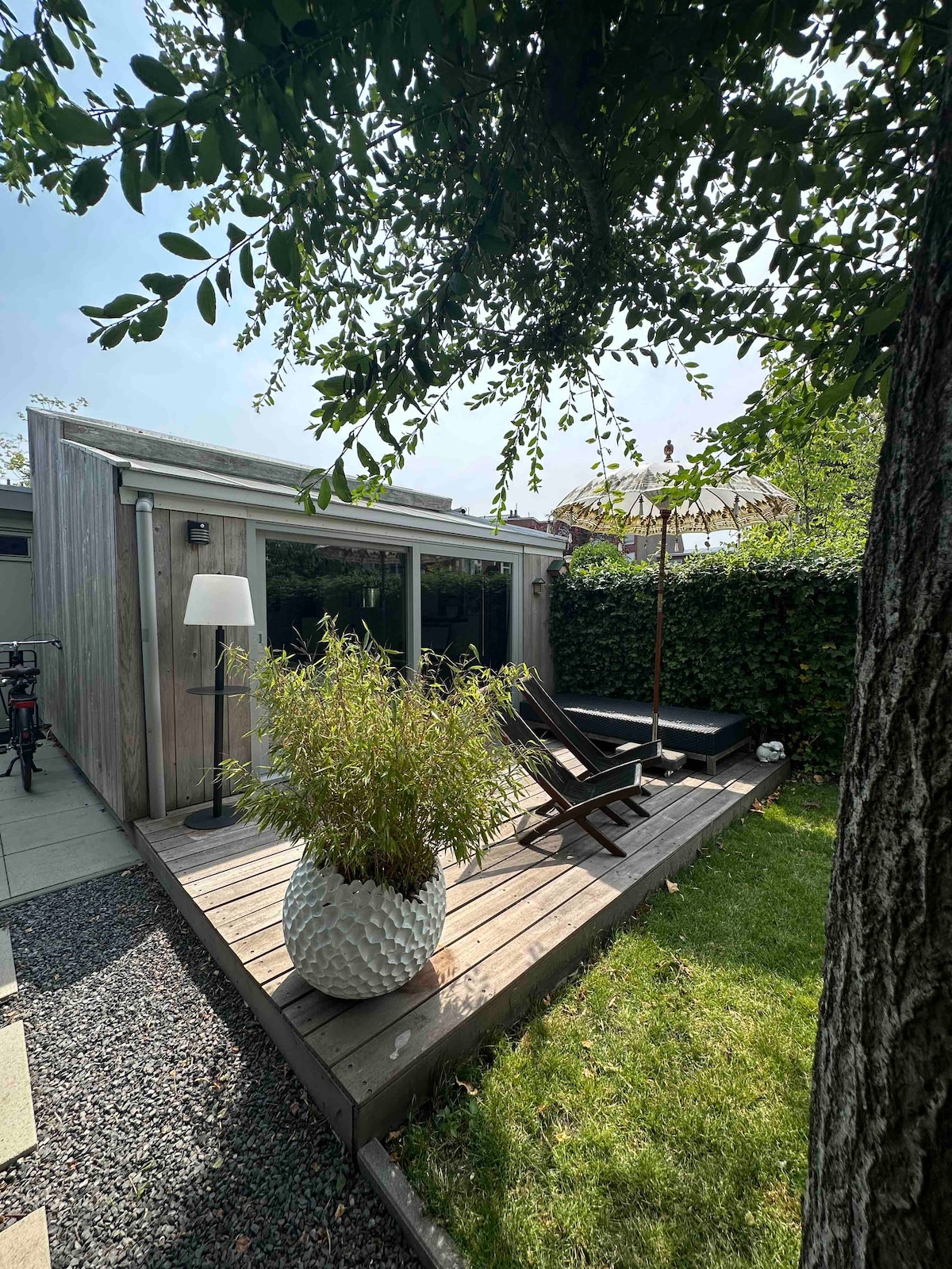 Disfruta de nuestra casa de huéspedes única en nuestro exuberante jardín verde escondido en privado entre las plantas y los árboles. La casa de huéspedes incluye entrada privada, baño, cocina, sauna y dos bicicletas. Ubicado a solo 10 minutos en bicicleta de Paterswoldsemeer, a 5 minutos de la reserva natural 'De Onlanden' y cerca de Lemferdinge y De Braak, hay suficiente para disfrutar en la zona cercana. ¿Te apetece un día en la ciudad de Groninga? Salta a la bicicleta o toma el autobús directo desde la parada de autobús ubicada a 5 minutos a pie de la casa de huéspedes.
