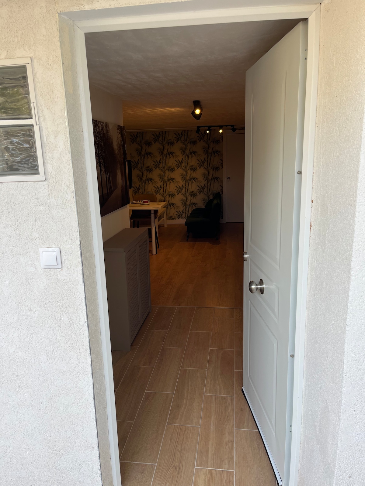 Apartamento amplio y luminoso en zona muy tranquila, ideal para descansar en familia. Cuenta con una habitación grande, estancias espaciosas, jardín privado,comedor amplio y despacho para trabajar. Aparcamiento gratuito privado. A solo 39 minutos del Parque Warner. Posibilidad de desayuno opcional. Perfecto para desconectar y disfrutar del confort.