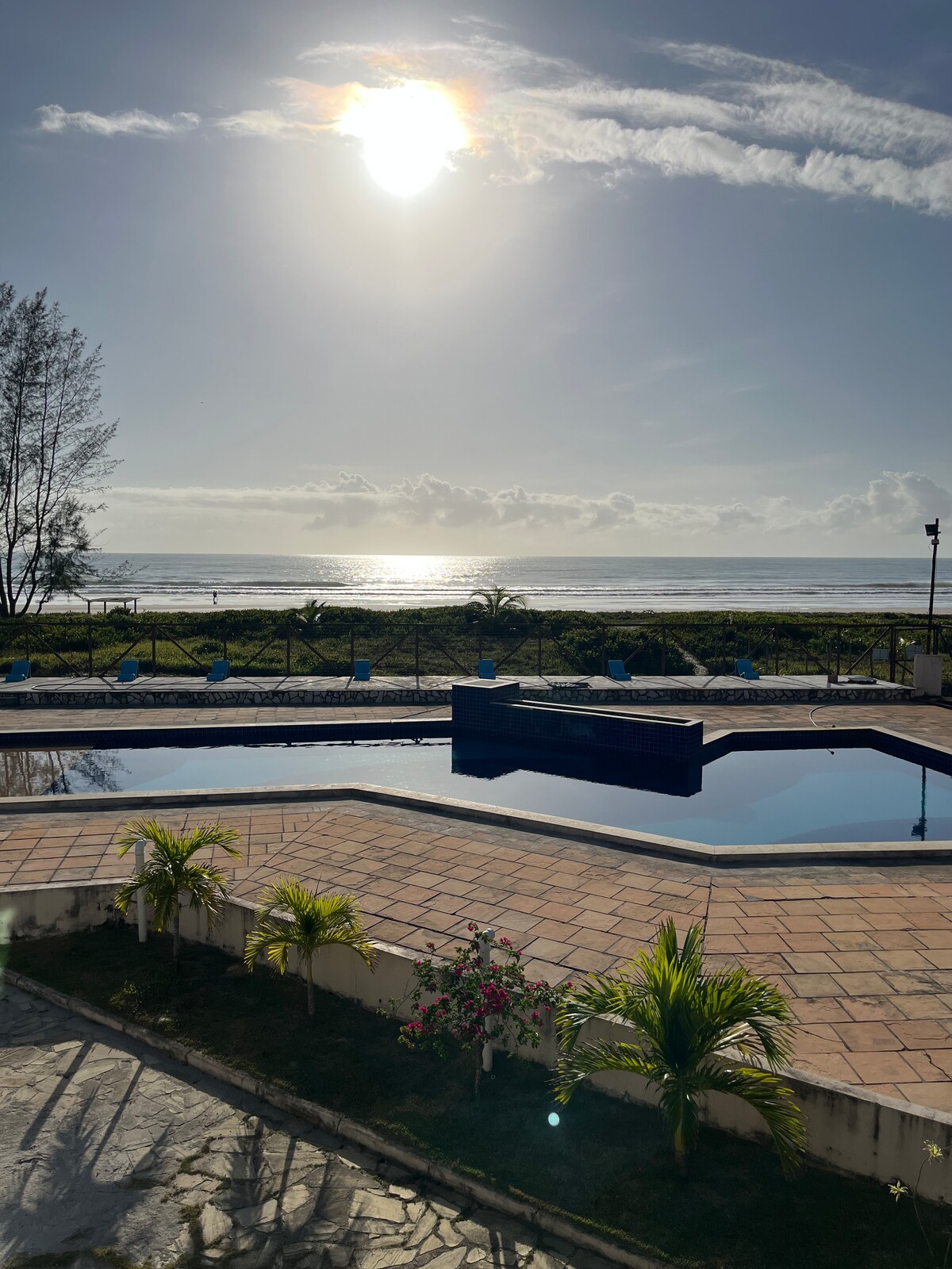 Hermoso y cómodo apartamento con suite, sala de estar/cocina, estacionamiento privado para 1 vehículo, ubicado en comunidad cerrada y muy cerca de la playa (50 metros). La suite cuenta con: TV de 42pulgadas y aire acondicionado dividido. En la cocina: estufa, refrigerador, microondas, sandwichera, licuadora y cafetera. En la sala de estar: un sofá cama. El condominio: en uso colectivo, los huéspedes pueden disfrutar de piscina, salón de baile, sistemas de cámaras, wifi en las zonas exteriores y apoyo de una casa.