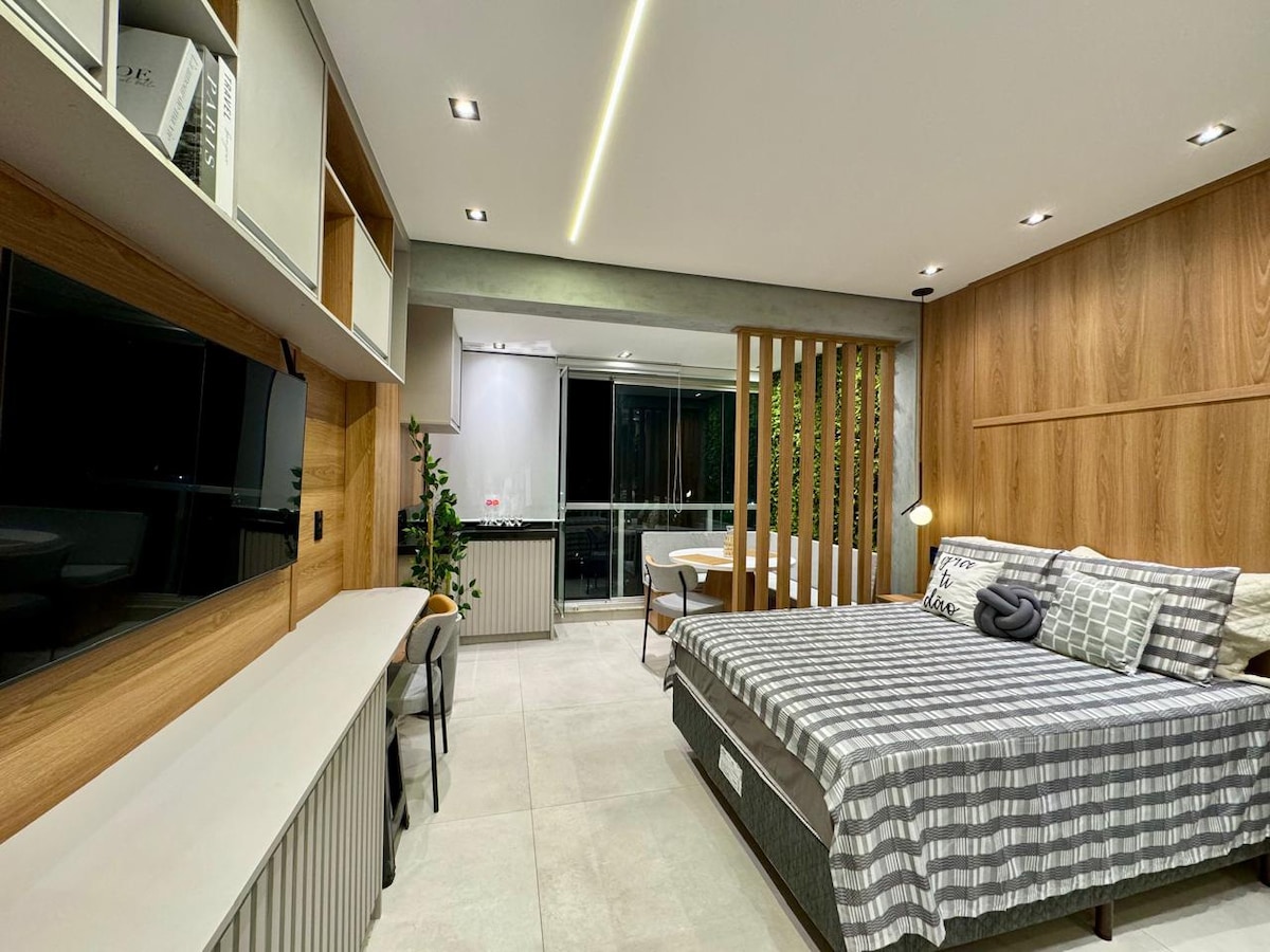 El alojamiento perfecto para aquellos que buscan comodidad, seguridad, fácil acceso al aeropuerto GRU (9 km) y en la mejor ubicación de la ciudad. Cuenta con: - Cama doble tamaño queen. - Televisión inteligente - Aire acondicionado (calor/frío) -wi-fi Oficina -saw - sofá cama - Correcto de corortina -varanda -cozinha equipada - Cama/baños Infraestructura completa en el condominio La piscina en la azotea (en obras del 09/03 al 18/04/26) con la vista más impresionante de la ciudad. Tiene un lugar de aparcamiento cerrado/techado. No aceptamos mascotas.