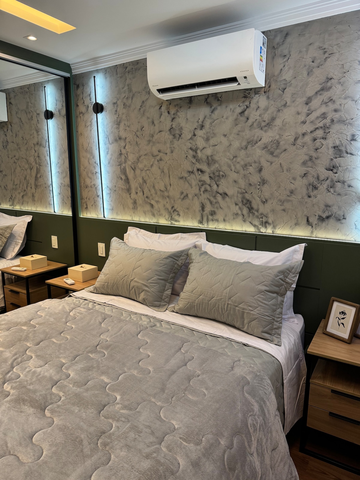 Apartamento a estrenar, en el centro de Guarulhos, bien ubicado, cerca de mercados, restaurantes, bares, centro comercial; Aire acondicionado, lavadora secadora, horno, cocina, nevera, utensilios domésticos, home-office, cerradura electrónica, estacionamiento gratuito, piscina, sauna, gimnasio, entre otros. El apartamento tiene todo lo que necesitas para una gran estancia para períodos cortos o largos. El lugar ofrece cama doble, sofá, TV con Netflix y PrimeVideo.