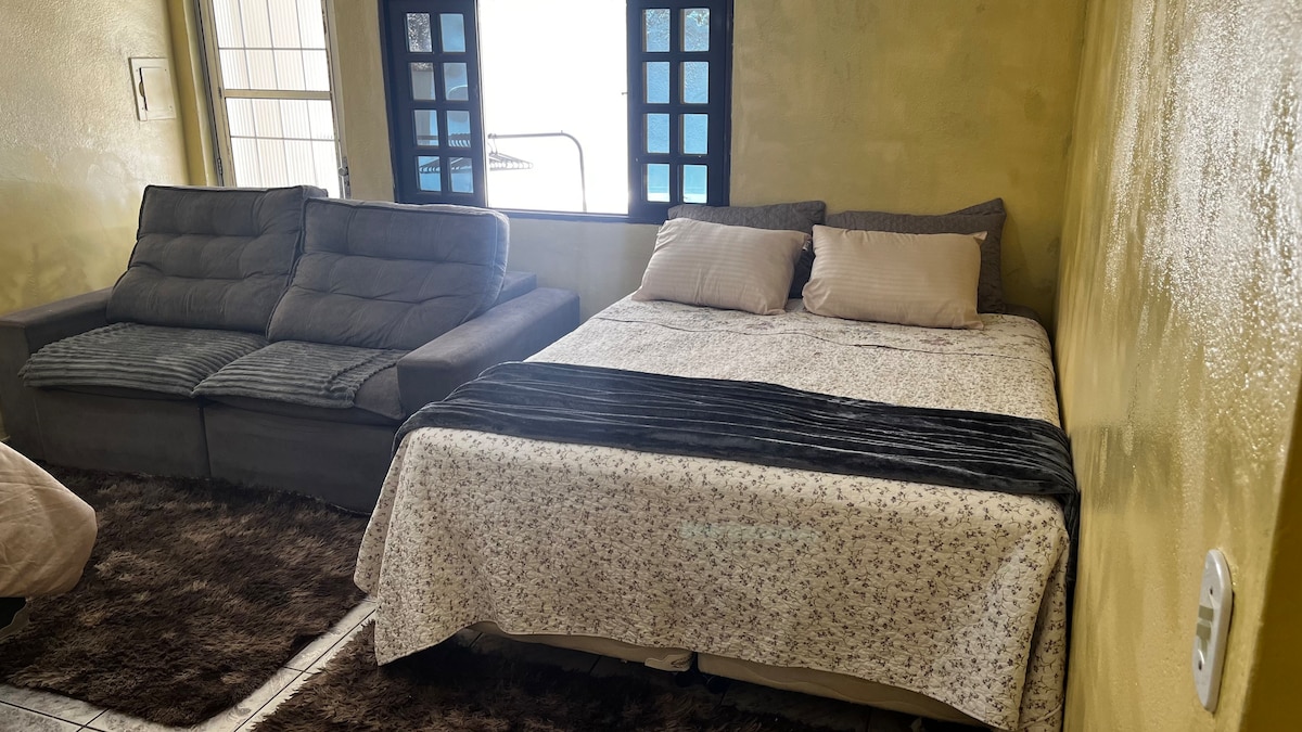 Disfruta de la simplicidad en este lugar tranquilo y bien situado… A 25 minutos del aeropuerto internacional de Guarulhos. Hay un promedio de 3 km del centro comercial internacional Guarulhos. Fácil acceso a las principales autopistas. El espacio Aquí puedes contar con un espacio completo y exclusivo, con dormitorio, sala de estar, cocina y baño con total independencia. Espacio con todo a tu mano para ti que necesitas comodidad, tranquilidad y practicidad. Además de cocinar y utensilios para tus comidas.