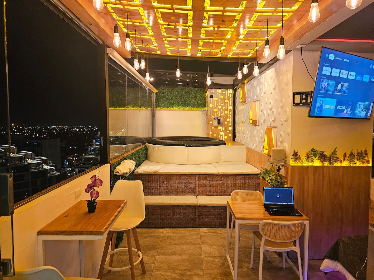 Disfruta de una experiencia de lujo en este elegante penthouse ubicado en la Zona 10 de Guatemala, una de las áreas más exclusivas y seguras. Ofrece una vista impresionante, además de comodidad y estilo. El punto culminante del penthouse es su jacuzzi privado, perfecto para relajarse después de un día explorando la ciudad. Es ideal para parejas, viajeros o cualquier persona que busque una estancia de lujo en Ciudad de Guatemala.