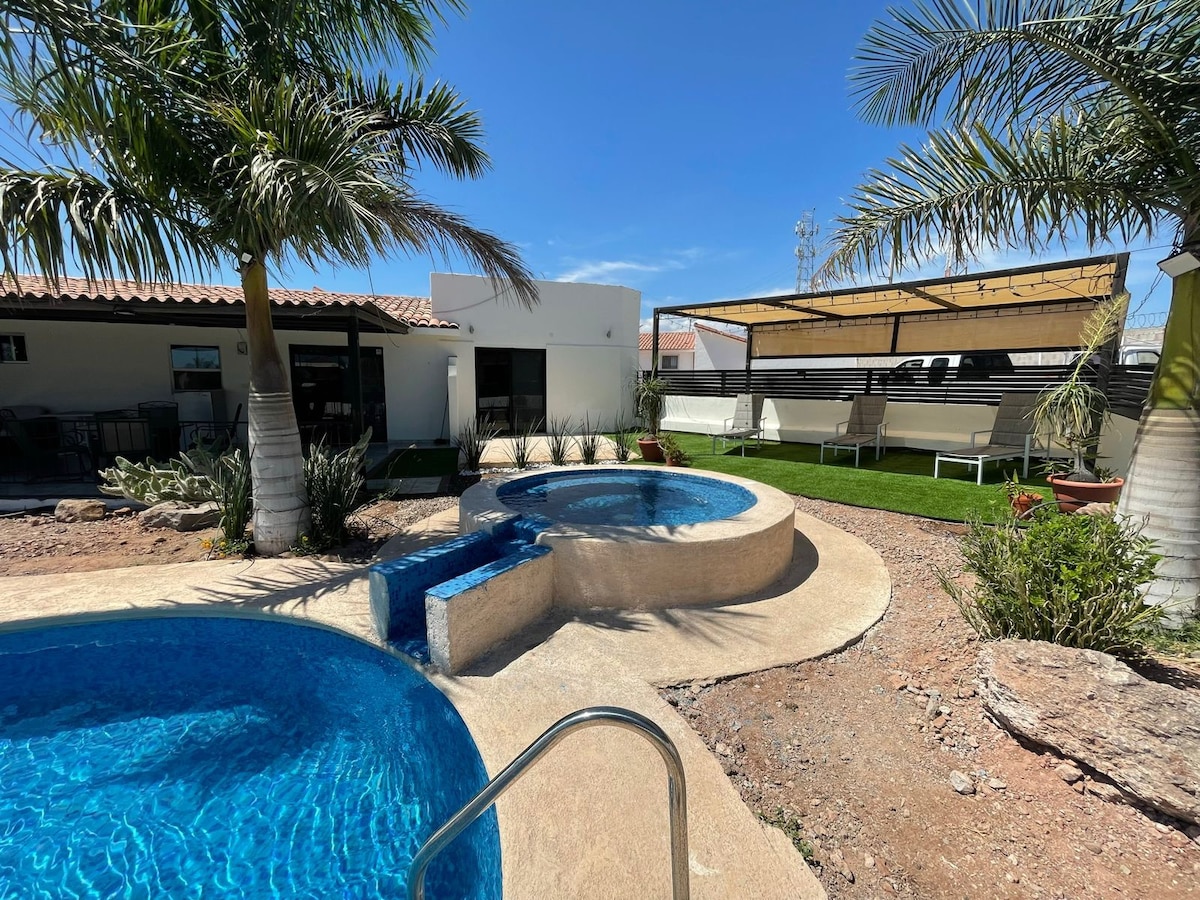 Este alojamiento único tiene mucho espacio, es un residencial tranquilo para que disfrutes con los tuyos, además cuenta con una piscina gigante con chapoteadero para que los niños puedan refrescarse. Frente a esta casa contamos con un campo de golf para que todas las mañanas puedan salir a jugar , caminar, hacer ejercicio etc.. Todo se encuentra a poca distancia (8 minutos) autoservicios, restaurantes y por supuesto las playas del mar de Cortez