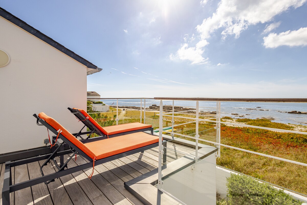 Esta excepcional casa de arquitecto fue creada por Erwan Le Berre. La vista es de más de 180° sobre el mar: este, sur y oeste. La piscina interior está climatizada y es agradable. Las salas de estar están en 2 plantas: 1 gran sala de estar y comedor con grandes ventanales al mar y un altillo para la televisión. Para 6 personas, consta de 4 habitaciones: 2 grandes y 2 pequeñas. Camino privado para acceder a la playa. Clasificado como alojamiento amueblado de 3 estrellas
