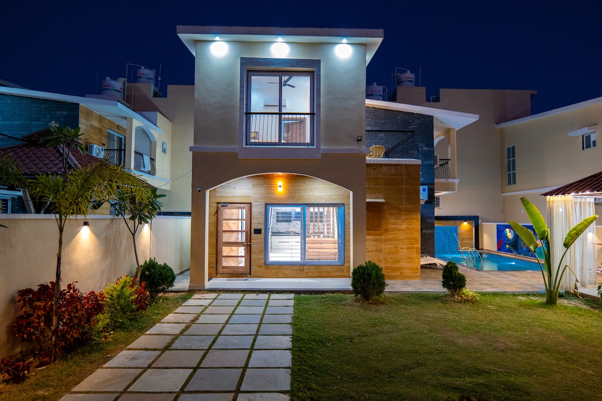 Rodeada de árboles de neem y exuberante vegetación, esta villa privada ofrece una escapada serena con una piscina privada dentro del club de golf Kensville. Al entrar, hay una mezcla perfecta de comodidad moderna y belleza natural. Los huéspedes encuentran que la piscina es el lugar ideal para fiestas y reuniones. A nuestros huéspedes les encanta disfrutar del deleite culinario con nuestro chef profesional que puede atender a tus papilas gustativas, ofreciendo cocina india, china e italiana.