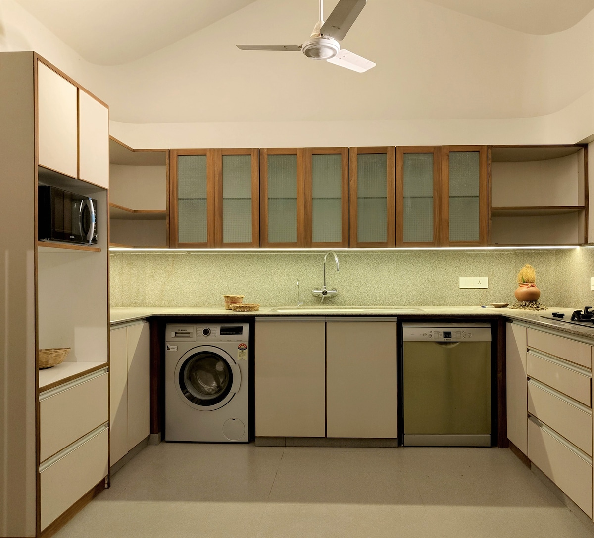 Experience luxury living in this modern 3BHK in prime Alkapuri. Enjoy serene palm & coconut tree views from every room, a stylish living area with a 65” TV, elegant sofas and dining space. Fully equipped kitchen with all cookware. Master bedroom features a private home cinema with 80” screen, projector & bathtub. King-size beds with luxury mattresses, 55” 4K TVs in all rooms, clean bathrooms and a dedicated workstation. Perfect for families & premium stays.
