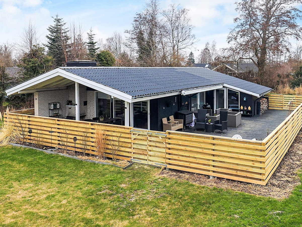 Sommerhus med plads til hele familien. Huset ligger blot 300 meter fra en af Danmarks bedste strande. Huset byder på trampolin og boldspil i haven eller brætspil og hygge foran TV'et eller brændeovnen. Er det godt vejr kan den store træterrasse nydes til solbadning eller et glas rose i loungemøblerne. Der findes også overdækket terrasse så man kan spise ude selvom vejret ikke er godt. Hold ferie i rolige og naturskønne omgivelser hvor dådyr ofte kommer forbi i haven om morgenen eller aftenen.