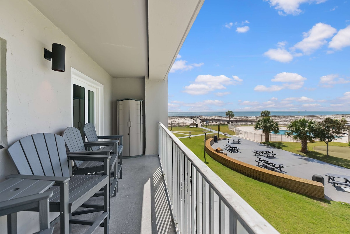 Disfrute del lujo costero en este condominio de esquina de 3 habitaciones y 3 baños frente a la playa en Orange Beach, Alabama. Disfrute de vistas panorámicas de 180° al golfo, abundante luz natural y un diseño de planta abierta perfecto para relajarse o recibir invitados. Entre las características se encuentran una cocina totalmente equipada, televisores inteligentes con wifi de alta velocidad, un balcón privado con zona de comedor al aire libre y un armario de playa completamente surtido. A pocos pasos de la arena blanca como el azúcar, ideal para una escapada inolvidable a la playa.
