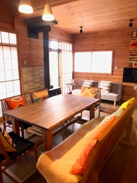 ※ El personal de habla inglesa está disponible Puedes quedarte despacio (14:00 ~ 11:00) [Área] Toy Kingdom a 10 minutos Kusatsu Onsen a 30 minutos Shiraito Falls a 20 minutos Harnire Terrace/Tonbo no Yu 30 min Estación Karuizawa 40 Manza Onsen/Estación de esquí a 45 minutos Car Saka Pass/Takamine Kogen 60 minutos [Instalaciones] . Cocina. Cocina de arroz/refrigerador/microondas/estufa de gas/sartén/platos (palillos, tazas, platos, etc.) * Por razones de higiene, sin condimentos - - Baño. Champú/enjuague/jabón corporal · Toalla de baño/toalla pequeña Secadora Cepillos de dientes Otros Estufa/red de barbacoa Estacionamiento: 2 autos · Proyector ※ compatible con HDML/iPhone (iPad de uso gratuito) Pantalla grande ※ Ver películas en interiores/exteriores (en preparación) Audio (Bluetooth) Dormitorios 1 cama de dos camas. 1 cama individual · Juego de colchones (varias personas) ※ La iluminación de la terraza de madera no está disponible Por las instalaciones Tienda de comestibles: 10 minutos. Estación de servicio a 5 minutos Wholesale Center Sanyi a 10 minutos Kakure no Yu 15 minutos Barragi Onsen/10 minutos