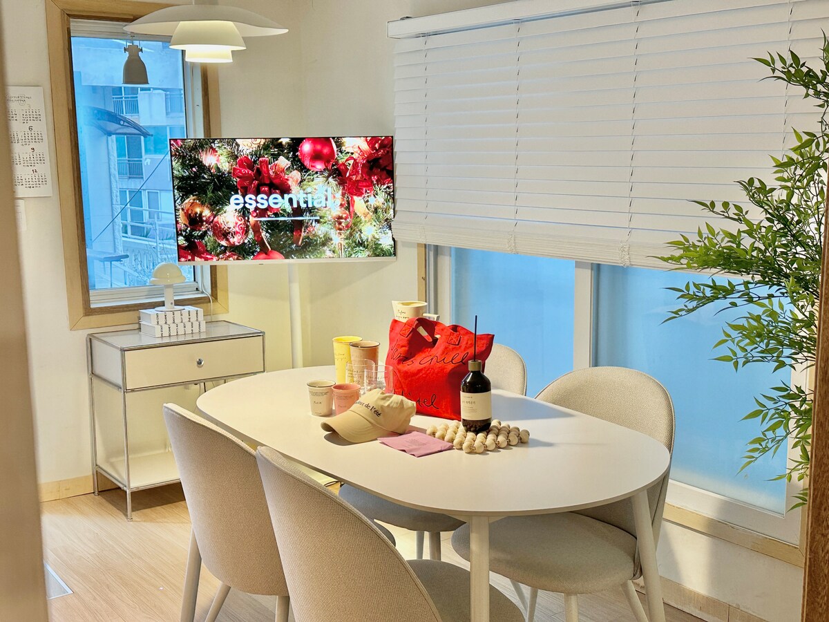Wolhai es un edificio construido con 70 pyeong en una tierra de 120 pyeong en el centro de la nueva ciudad de Haeundae, basada en el diseño de espacios diferenciados y el estilo arquitectónico para los huéspedes, y prometemos la mejor comunidad y el mejor espacio para un solo equipo. Se puede llegar a la playa de arena blanca Haeundae, Dalmaji y Songjeong en 10 minutos en coche, y el mercado Haeundae New City y las tiendas de comestibles del centro están a 5 minutos a pie. Hay un purificador de agua separado para publicar y hay varios productos de conveniencia como el altavoz Bang & Olufsen, el purificador de aire Dyson, la secadora Dyson y Stenbaimi. El jacuzzi al aire libre no está disponible de noviembre a marzo, y la tarifa de agua caliente del jacuzzi es de 50 000 KRW. (Tardará unas 2 horas en recibir agua caliente)