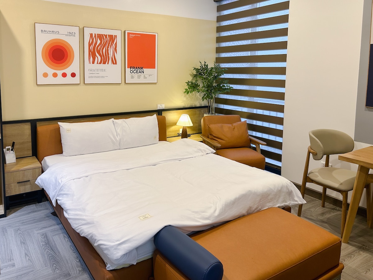 Esta habitación luminosa y compacta ofrece una gran ventana junto a la cama, que aporta mucha luz natural y una sensación de amplitud. Encontrarás una cocina bien equipada con fogones, microondas y nevera, ideal para preparar comidas sencillas. Aunque de tamaño modesto, el espacio está cuidadosamente diseñado para proporcionar comodidad y conveniencia, por lo que es una opción perfecta para viajeros solitarios o parejas.
