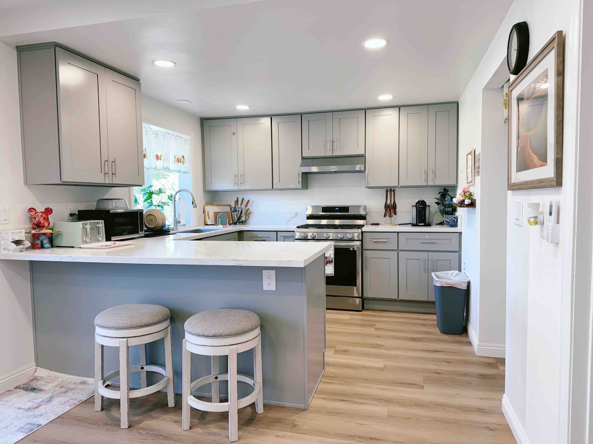 Completely remodeled, stylist and super spacious (1,350sq ft) stylist 2 Bedrooms, 1 newly remodeled restroom with Rain Shower. Spacious Master with King Bed and 2nd with Queen Bed, both white luxurious bedding. Unit comes with all air-fryer, rice cooker, K-cup coffee machine, and everything you will need. 75-inch smart TV. Fast Fiber Internet 500mbs.