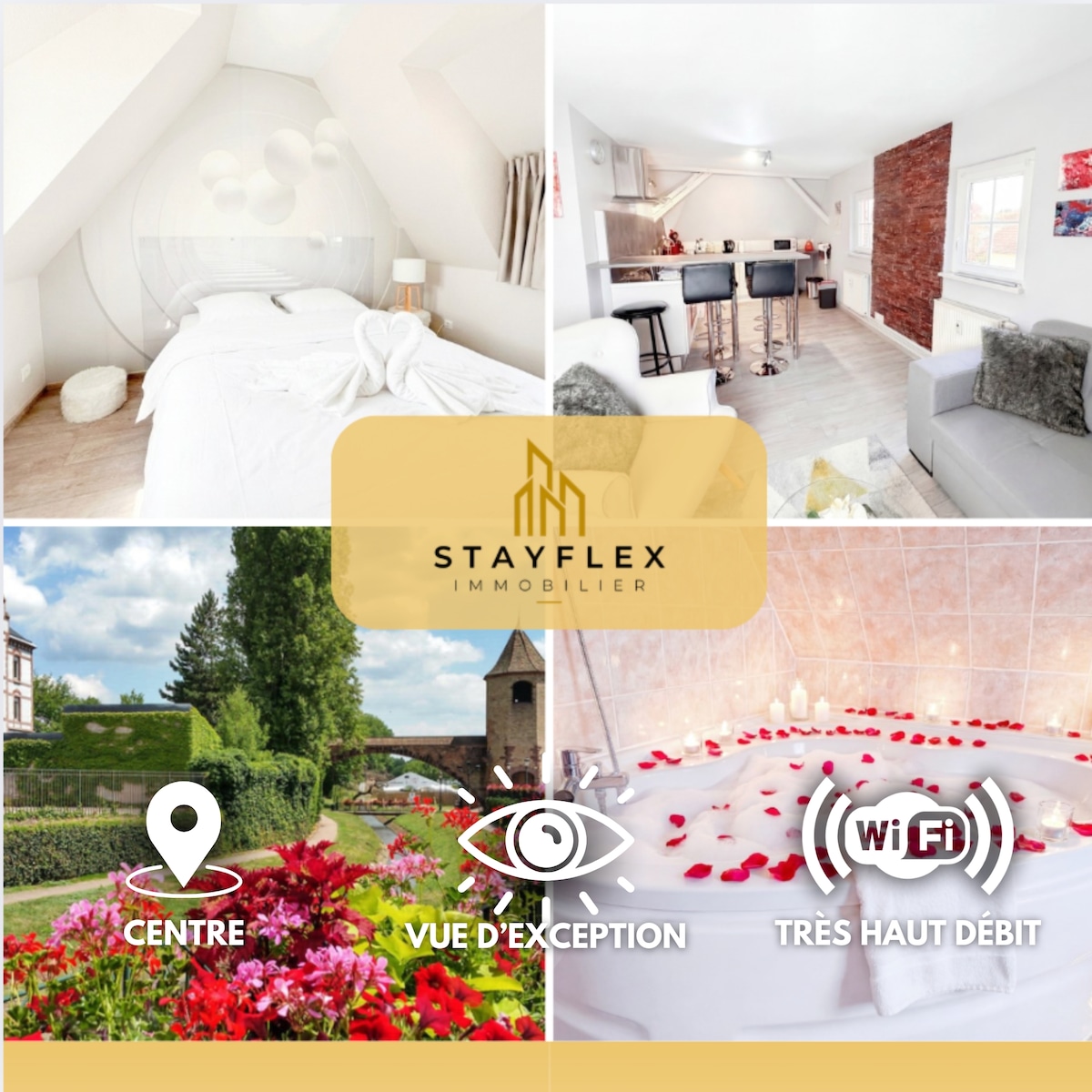 Découvrez l’Observatoire de la Cathédrale, magnifique triplex situé sur la célèbre Grande Île de Strasbourg. Idéal pour une escapade romantique, un séjour en famille ou un voyage d'affaires, ce logement unique allie confort moderne et charme alsacien. Ce triplex offre une décoration chaleureuse et élégante, avec des touches alsaciennes traditionnelles qui se mêlent à un design contemporain. Garage privé gratuit avec accès sécurisé à 20 mètres.