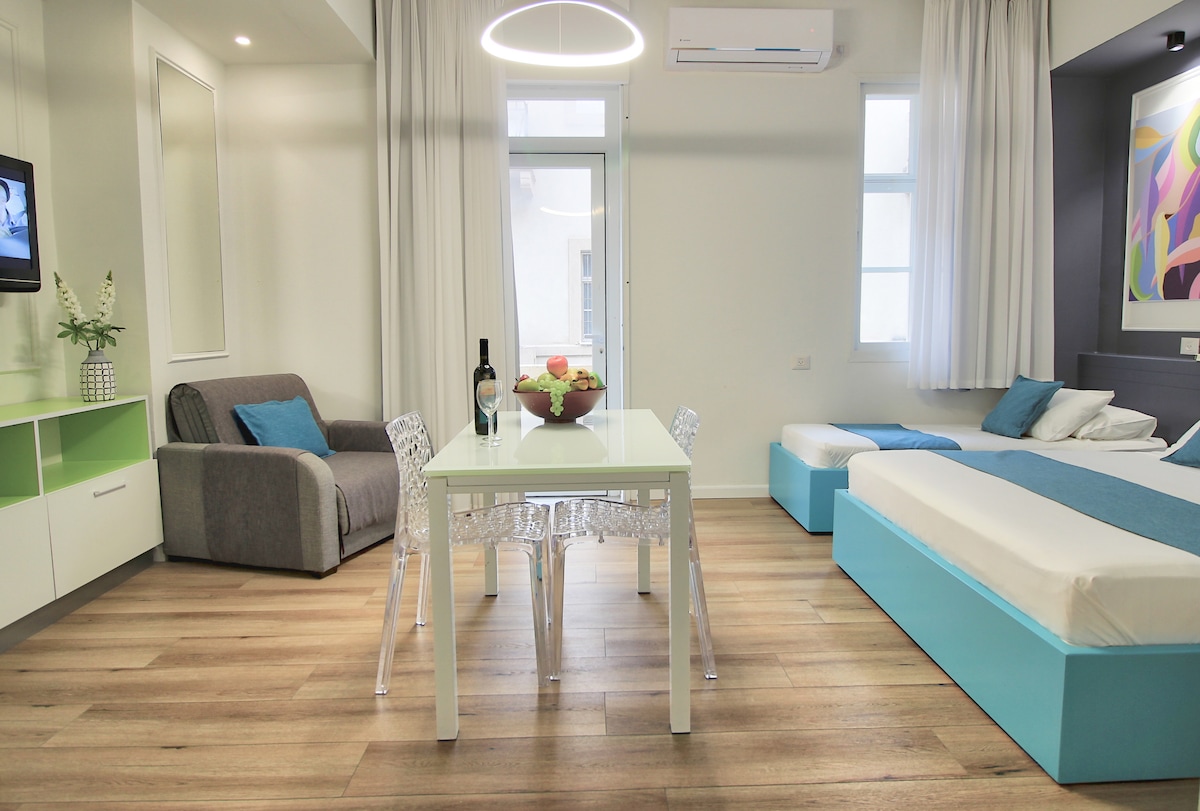 ¡Vive la auténtica experiencia de Haifa en este encantador estudio de 25 m², ubicado en un edificio de 100 años a solo 5 pasos de la bulliciosa calle Ben Gurión! A ✔ pocos pasos de los jardines y cafés bahá'ís Jacuzzi ✔ privado: relájate después de un día de exploración en tu propia bañera de hidromasaje relajante Encanto ✔ histórico + comodidad moderna ✔ Perfecto para parejas: espacio íntimo y elegante para una escapada romántica. Cama tamaño queen, cocina pequeña, TV inteligente, wifi rápido A 1 minuto de los bares, a 5 minutos de los jardines Reserva ahora y vive el corazón de Haifa.