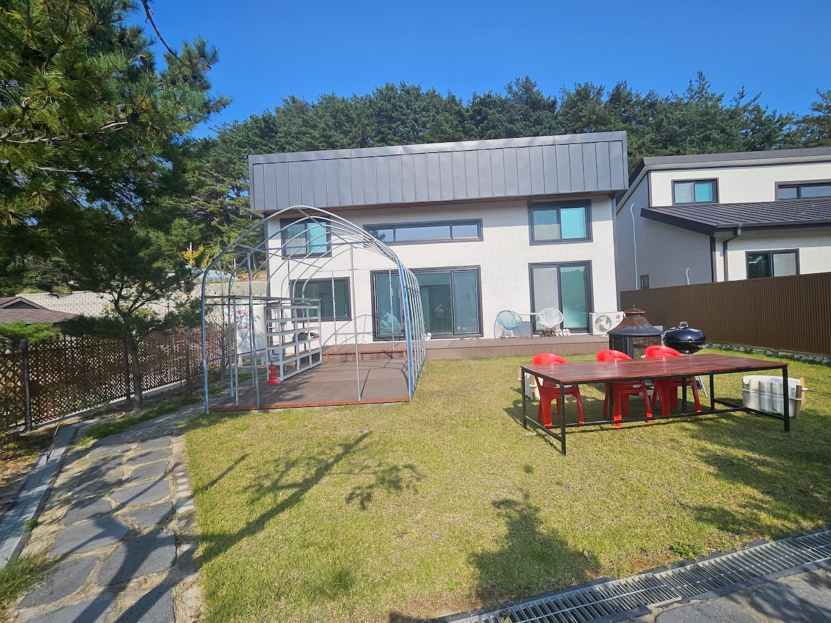 Es una pensión privada tranquila ubicada cerca de la playa de Seorak, entre Sokcho y Yangyang. Los principales lugares turísticos de Sokcho y Yangyang están a 10 minutos en coche, por lo que son de fácil acceso. Es una pensión solo para un equipo, hay un baño, una cocina, un aire acondicionado, una barbacoa independiente con equipo de sonido de pantalla de proyección, y un césped y un patio de piscina donde los niños pueden jugar con seguridad. La pensión está cerrada con una cerca en todas las direcciones, por lo que es seguro dejar a los niños sueltos. La altura baja de la piscina de 40 cm minimiza el riesgo de accidentes de seguridad cuando los niños juegan en el agua, y no se reutiliza el agua de la piscina porque es solo para agua corriente (agua fría). Hay un estacionamiento gratuito de 330m2 y un total de 3 baños (ducha). Todas las instalaciones de la pensión son gratuitas. Consta de 1 dormitorio, 1 habitación de tatami y una amplia sala de estar. La sala de estar y cada dormitorio tienen aire acondicionado, cafetera de cápsulas, nevera y dispensador de agua. Nuestra pensión está diseñada para que los padres cansados de la crianza y las familias cansadas de la vida cotidiana puedan descansar tranquilamente y cómodamente.