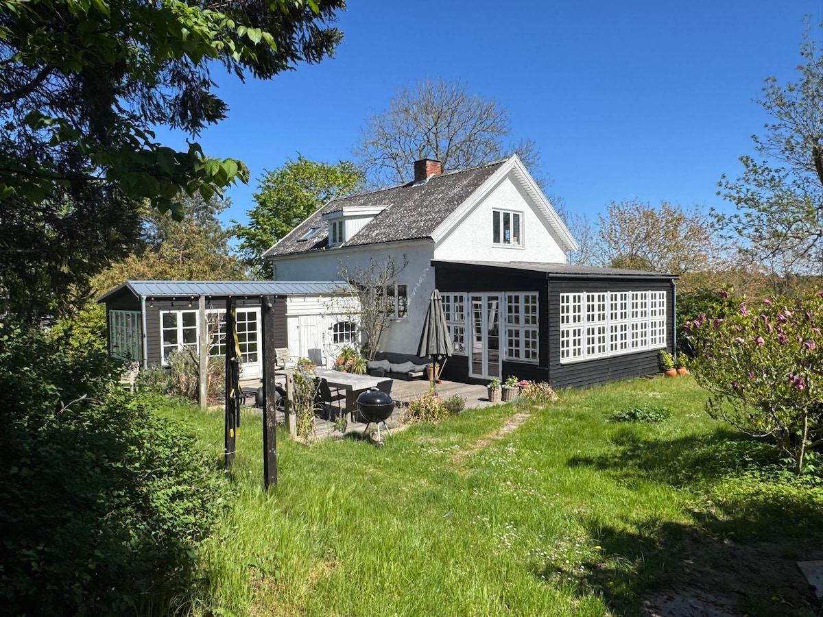 Skoven som nabo og udsigt over markerne. Det perfekt fristed langt fra larm og os, tæt på strand og aktiviteter. Der er 4 soveværelser og en rummelig hems. Der er et stort badeværelse, samt et toilet som tilgås udefra, med tilhørende udendørsbrus. Køkkenet er et snedkerkøkken med Miele hvidevare. Hop i vildmarksbadet og en tur i saunaen. Huset har i alt 5 trådløse højtalere. I hjørnet af haven er der anlagt en bålplads med en gynge hvor hele familien kan lave snobrød over bål