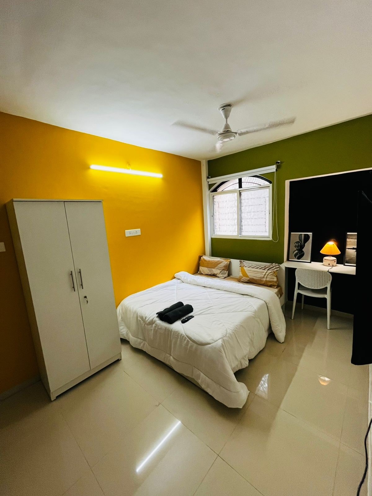 Experience comfort and elegance in this newly constructed 1 BHK studio apartment. Featuring premium furnishings, full air-conditioning, and high-quality interiors, every detail has been carefully curated. A fresh, modern space designed thoughtfully and arranged to make you feel at home—perfect for couples small family or business guests looking for a clean, modern, and relaxing space. This Serenity Cove is perfect for a comfortable and relaxing stay.