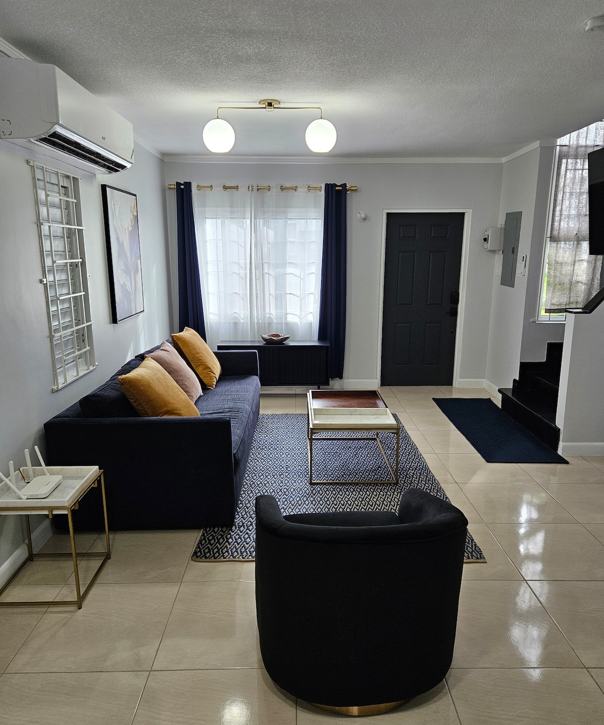 ¡Ubicación, ubicación, ubicación! Este apartamento de un dormitorio en la planta baja, con aire acondicionado y cómodamente amueblado, se encuentra en el corazón de Liguanea, el triángulo de oro, a 7 minutos a pie de la embajada de Estados Unidos, supermercados, centros comerciales, restaurantes y Starbucks, y a 5 minutos en coche de New Kingston. La unidad incluye entrada con teclado codificado al edificio, seguridad las 24 horas, cocina totalmente equipada, wifi, televisores inteligentes, cable, estacionamiento, piscina, agua caliente y lavandería en la unidad (por un cargo adicional).