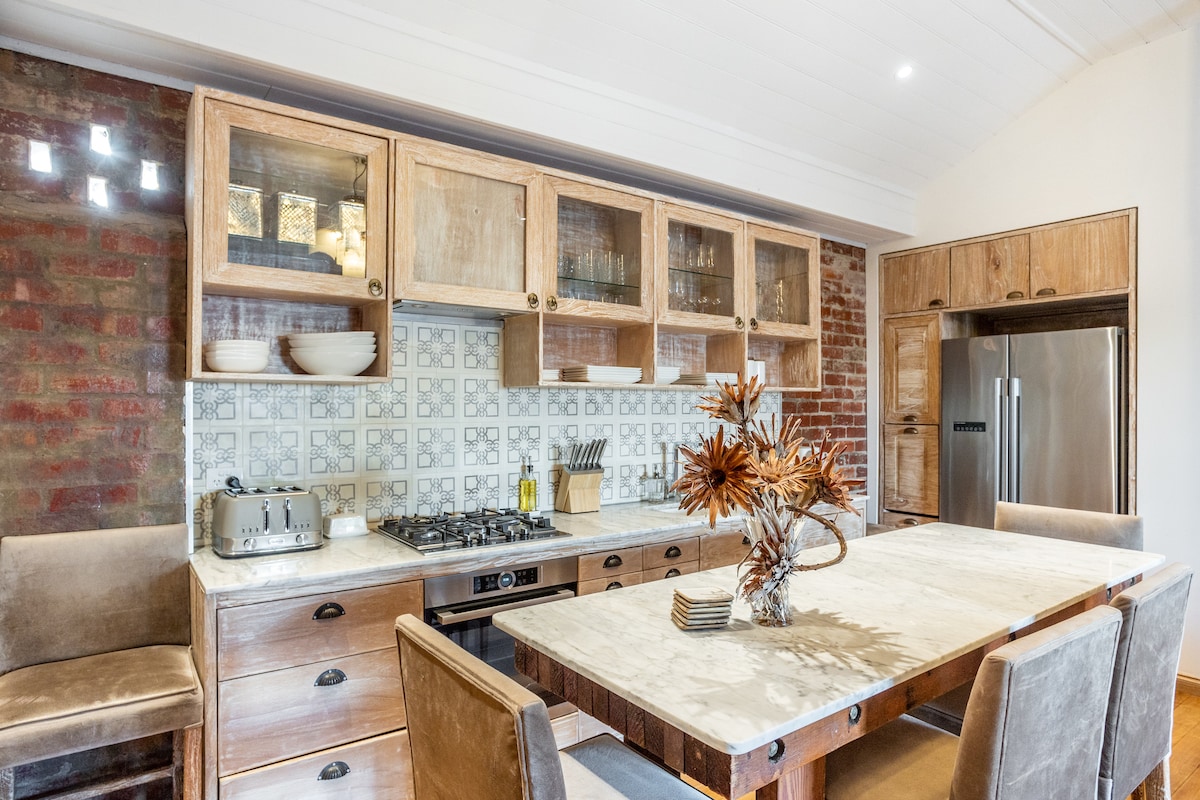 Los antiguos establos de Fitzroy North. Nuestro espacio es un antiguo establo renovado situado al fondo de nuestra casa en Fitzroy, al norte. Las dos propiedades se mantienen separadas, por lo que la casa es toda tuya durante tu estancia. Diseñamos el espacio para sentir que está conectado con el jardín, el techo de madera y las grandes puertas corredizas de vidrio se abren para permitir la entrada de la naturaleza. Este es un lugar para relajarse, un refugio que todavía está cerca de la diversión de la ciudad.