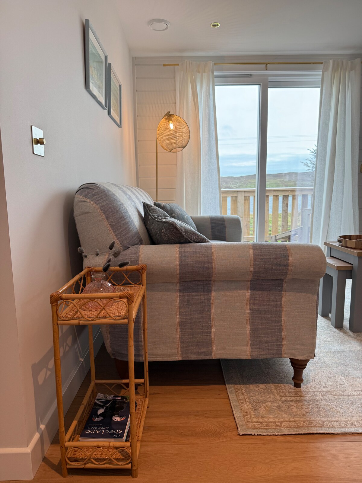 East-Gate was built new in 2018 the property is located in central Shetland and beautifully finished. Outside the patio door takes you onto a decked area which you can sit out on for your morning cuppa or evening glass of wine or to simply take in the scenery . It has the latest air to air heating and air con. We are very lucky to have a hot spot for otter sighting on our door step just a short walk down the field. The sea views and coastal walks makes this an ideal tranquil location.