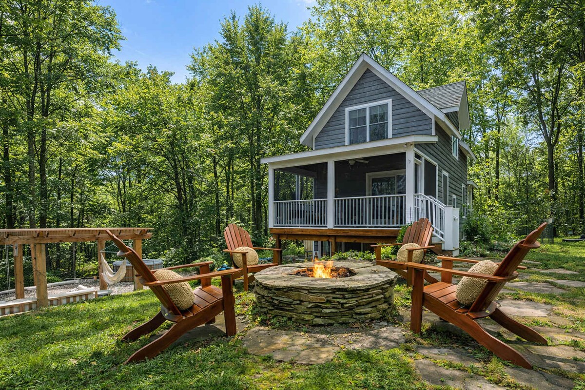 Cabaña de troncos contemporánea y rústica, a menos de 2,5 horas de Nueva York, enclavada en las Catskills; cabaña de esquí/refugio/escapada perfecta y bien equipada, tranquila y privada, a menos de 15 minutos de las montañas Belleayre y Plattekill, a pocos pasos del gimnasio de Catskill con piscina de tamaño olímpico, a poca distancia a pie de la destilería Union Grove; kayak y mercado de agricultores a 5 minutos en coche. Chimenea en el interior/fogata en el exterior. Ideal para teletrabajar, familias o escapadas románticas. Disfruta del senderismo, la pesca, las tiendas locales, las antigüedades, las galerías de arte y los restaurantes.