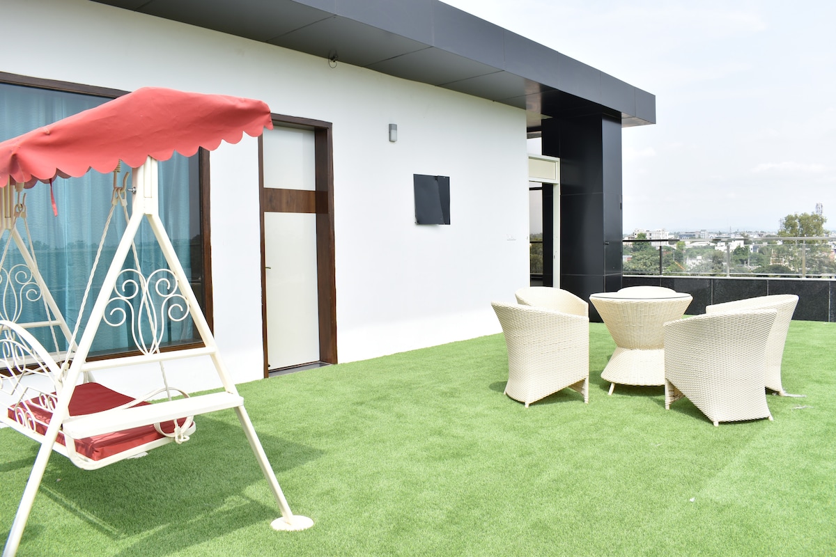 Mucho mejor que una habitación de hotel en Mohali /Chandigarh . Es un buen lugar para alojarse y disfrutar. Un espacio de nueva construcción ubicado en el corazón de Tricity (Chandigarh-Mohali-Panchkula). El lugar está ubicado en el quinto piso del edificio con un gran jardín con terraza. Tiene todo lo que esperas en una habitación de hotel de 5 estrellas como LED/ nevera, plancha, ganado eléctrico, bañera, cama tamaño king. Si vas a Shimla, Manali, etc., es un buen lugar para descansar. Se tarda solo 12 minutos desde el aeropuerto en llegar aquí. Gracias.