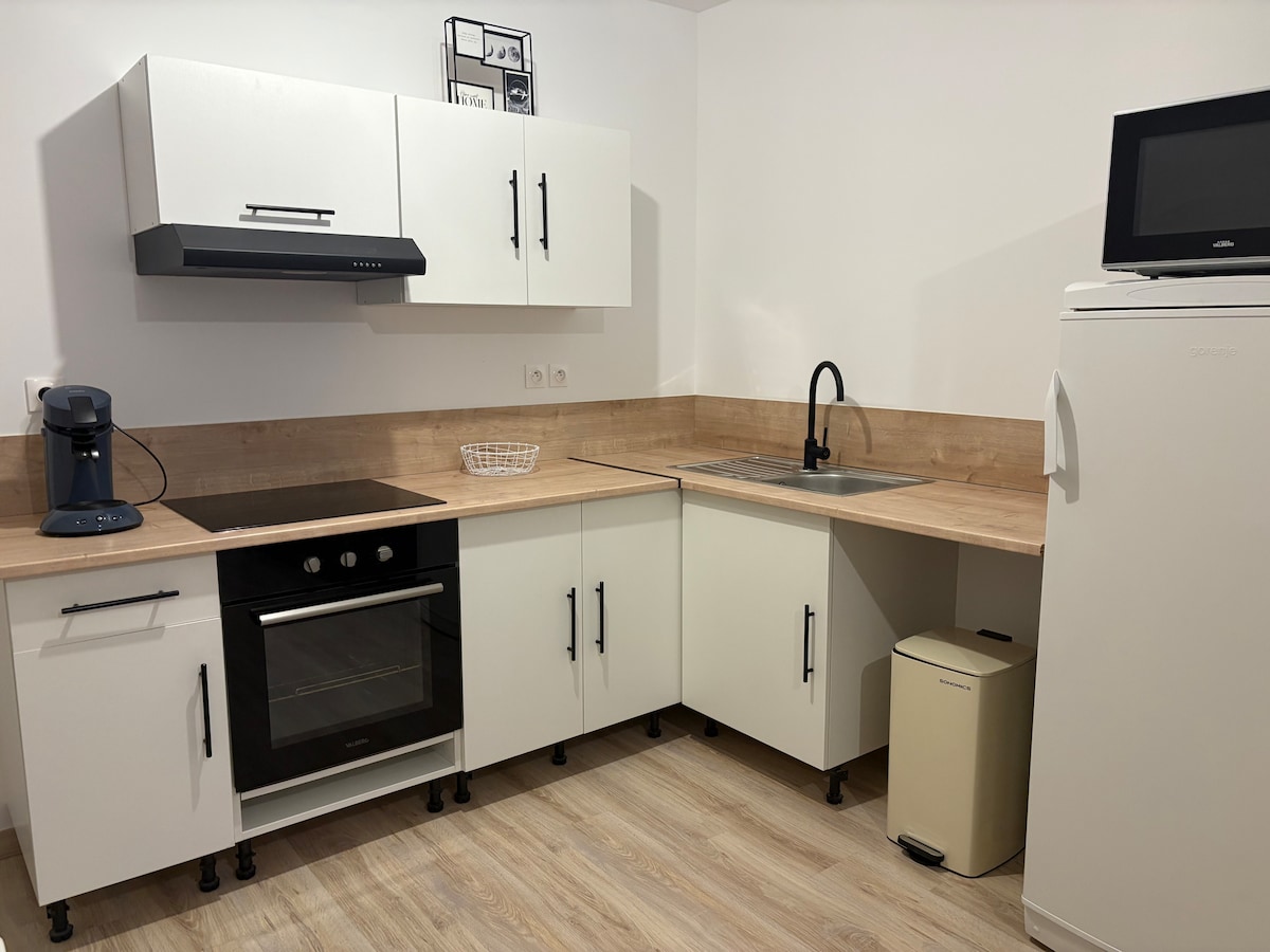 Appartement cosy et calme à Morez, proche du centre. Situé au 1er étage d’une ancienne bâtisse, il accueille 2 personnes : chambre avec lit Queen size, cuisine spacieuse, coin salon, espace bureau pour télétravail, salle de bain, buanderie. Poêle à pellets pour une ambiance cocooning. Parking gratuit au pied de l’immeuble, arrivée autonome via boîte à clés. Wifi, lave-linge et lave-vaisselle.