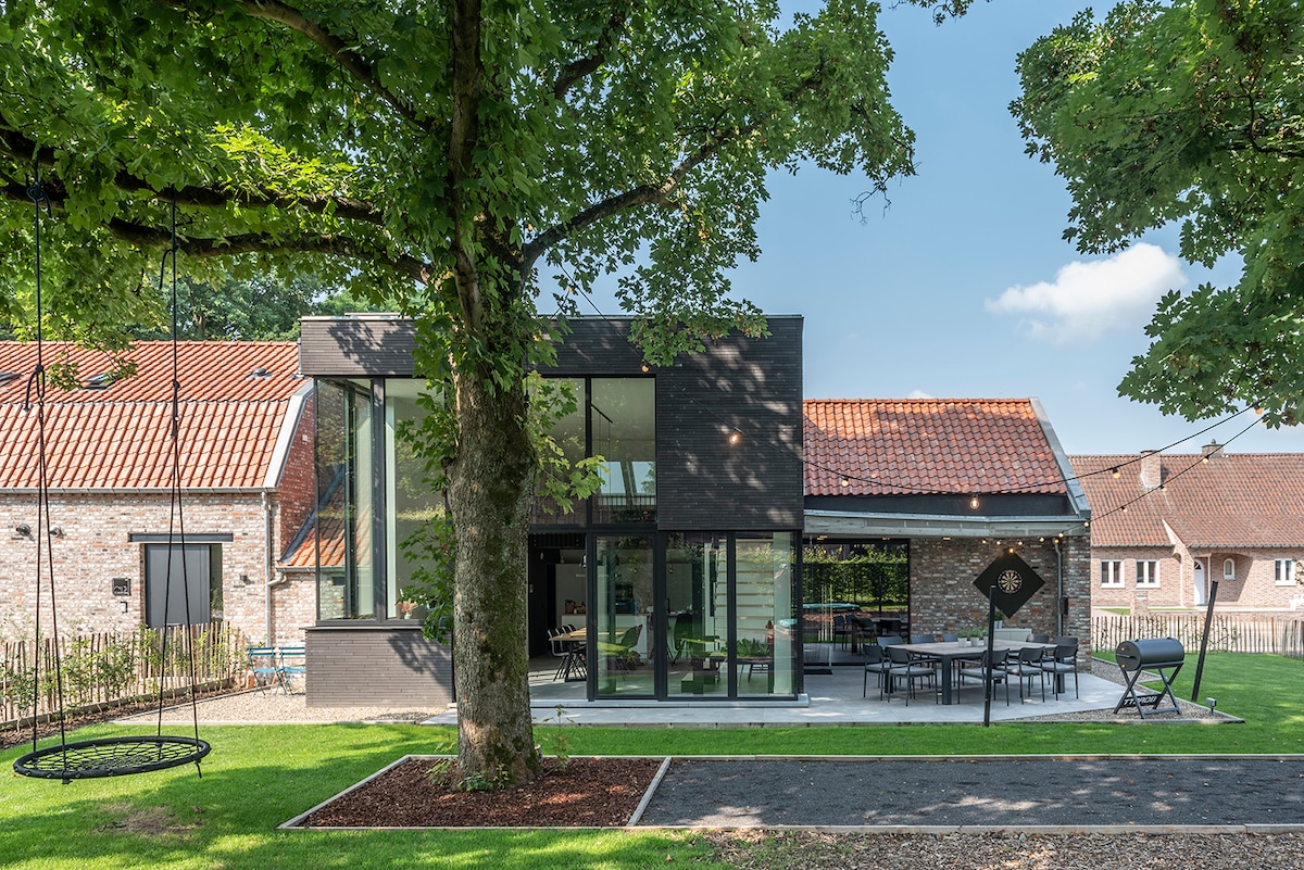 Esta moderna casa de vacaciones tiene todas las ventajas para ofrecerle unas vacaciones fantásticas: acogedora, cómoda, elegante y artísticamente amueblada, con vajilla artesanal, una maravillosa ducha de lluvia, una hermosa terraza privada en el campo. Ubicación tranquila cerca de la reserva natural de Maten, la red de rutas ciclistas y el dominio de Bokrijk. Puedes empaparte de cultura, cenar o ir de compras en Genk y Hasselt. La anfitriona es ceramista y estará encantada de explicarte su arte en su taller.