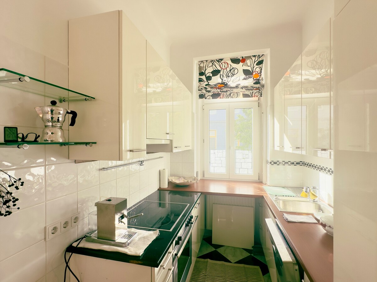 Apartamento de 2 habitaciones en villa de arquitecto en el centro de Grinzing. Una puerta del patio conduce desde la sala de estar directamente al jardín de 160 m2. A 5 minutos a pie del tranvía (38), que te lleva al centro de la ciudad en 20 minutos, así como a la estación de autobuses a las montañas locales de Viena y al metro (U4). La calle sin salida con poco tráfico conduce al pueblo de Grinzing. El mercado, las boutiques y las cafeterías vienesas están a poca distancia a pie y te invitan a pasear.