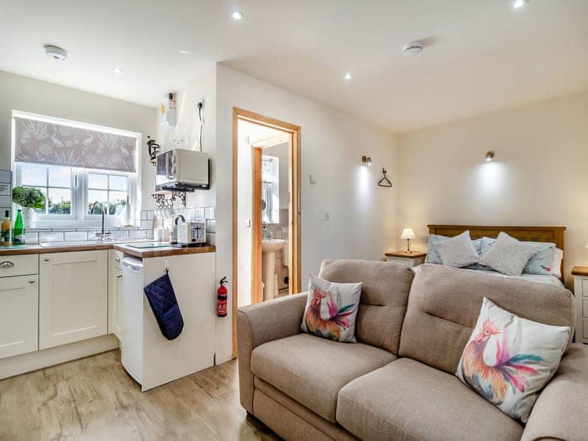 Nuestra cabaña ofrece una acogedora estancia independiente con una cocina totalmente equipada, salón, dormitorio con cama superking, ducha de lujo en suite y servicio con inodoro adicional. Esta casa ecológica tiene calefacción por suelo radiante y contiene muchos artículos reciclados, desde las tablas de andamios recuperadas del exterior hasta las muchas gemas reutilizadas que se encuentran en el interior. Al salir hay un patio privado orientado al sur y un jardín con su propio espacio de estacionamiento, todo a solo un paseo tranquilo de la ciudad.