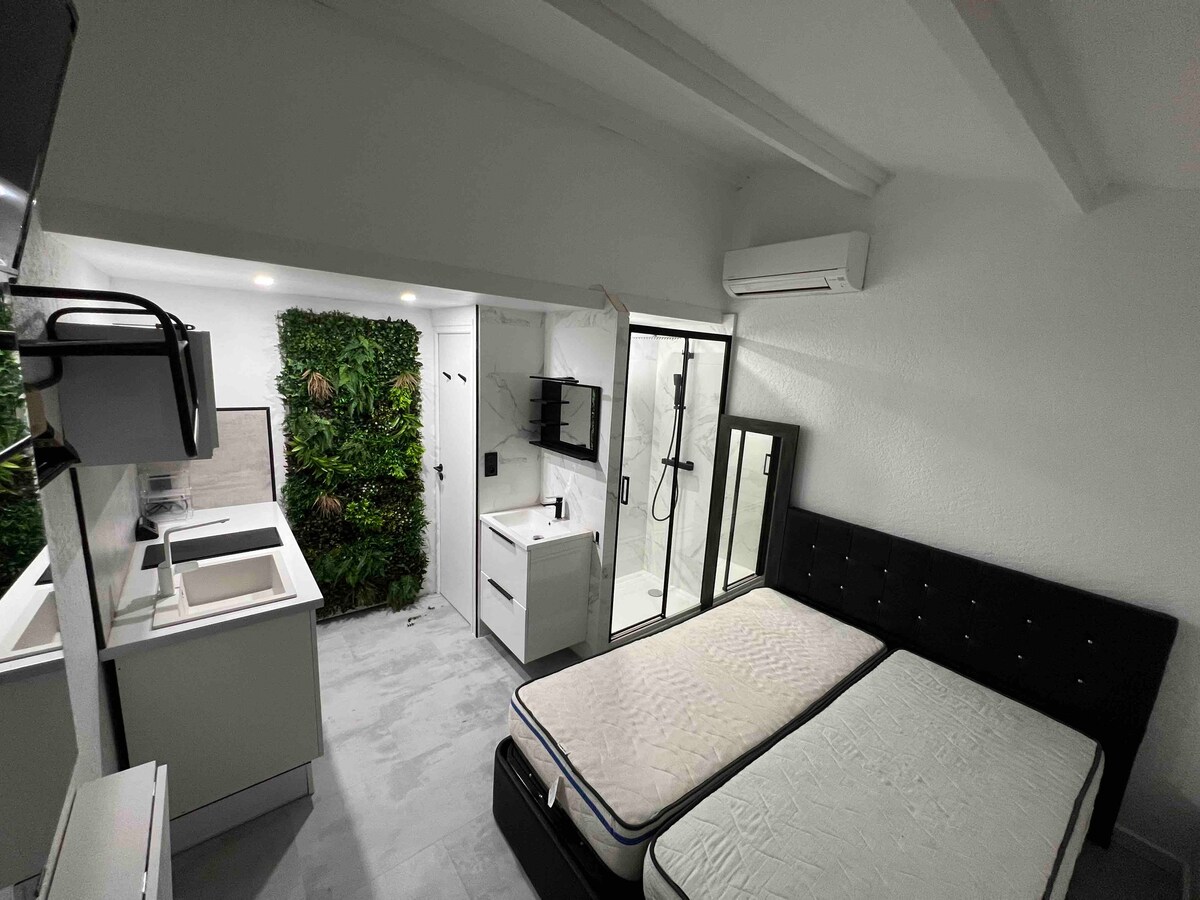 Acogedor estudio muy luminoso, frente al mar de 17 m² con aire acondicionado en el centro de Heliópolis H en la 4.ª y última planta con terraza de 5 m² con vistas al mar. Los ++ ✔ Aire acondicionado. ✔ Vistas al mar. ✔ Sin gastos de servicio. ✔ Reformado en 2022. ✔ Internet por fibra y televisión conectada. Se proporcionan✔ sábanas, toallas de baño y toallas de playa. ✔ Necesario para sus desayunos a su llegada: café, té, chocolate. ✔ Plaza de aparcamiento privado seguro en el P1-124